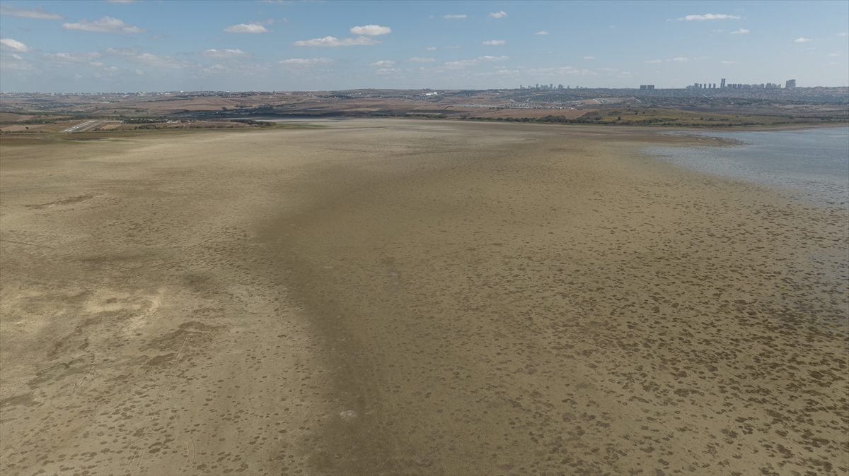Büyükçekmece Baraj Gölü`nde su çekilmiş durumda. Su olan bölümlerde ise derinliğin oldukça düştüğü belirtiliyor.