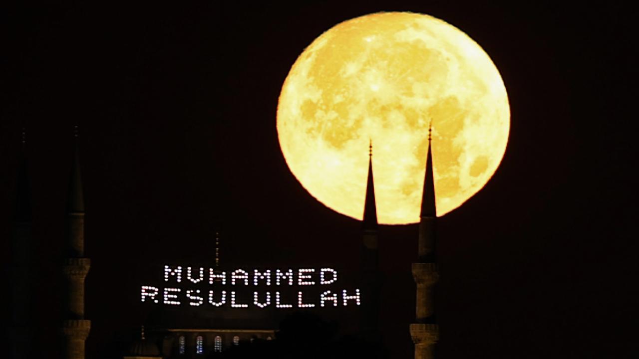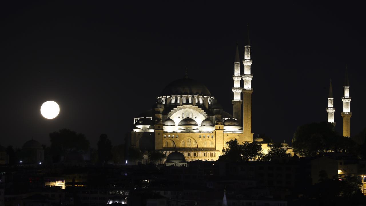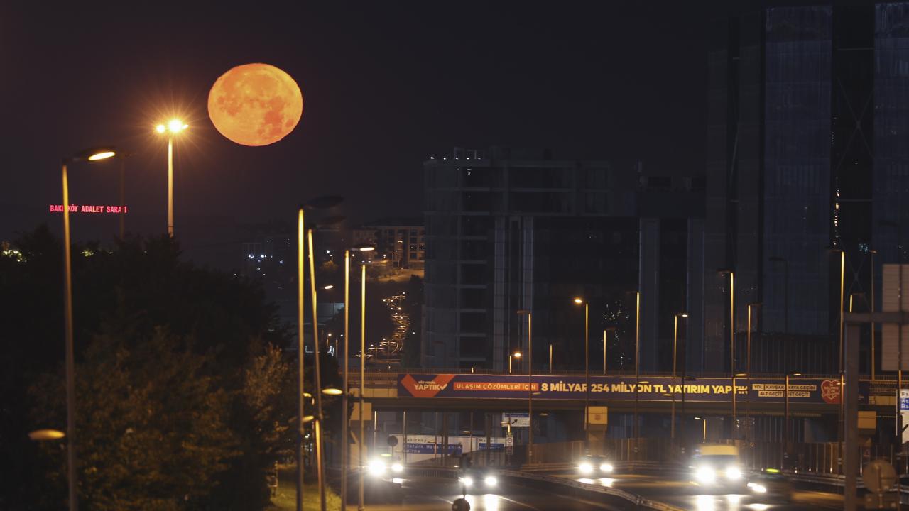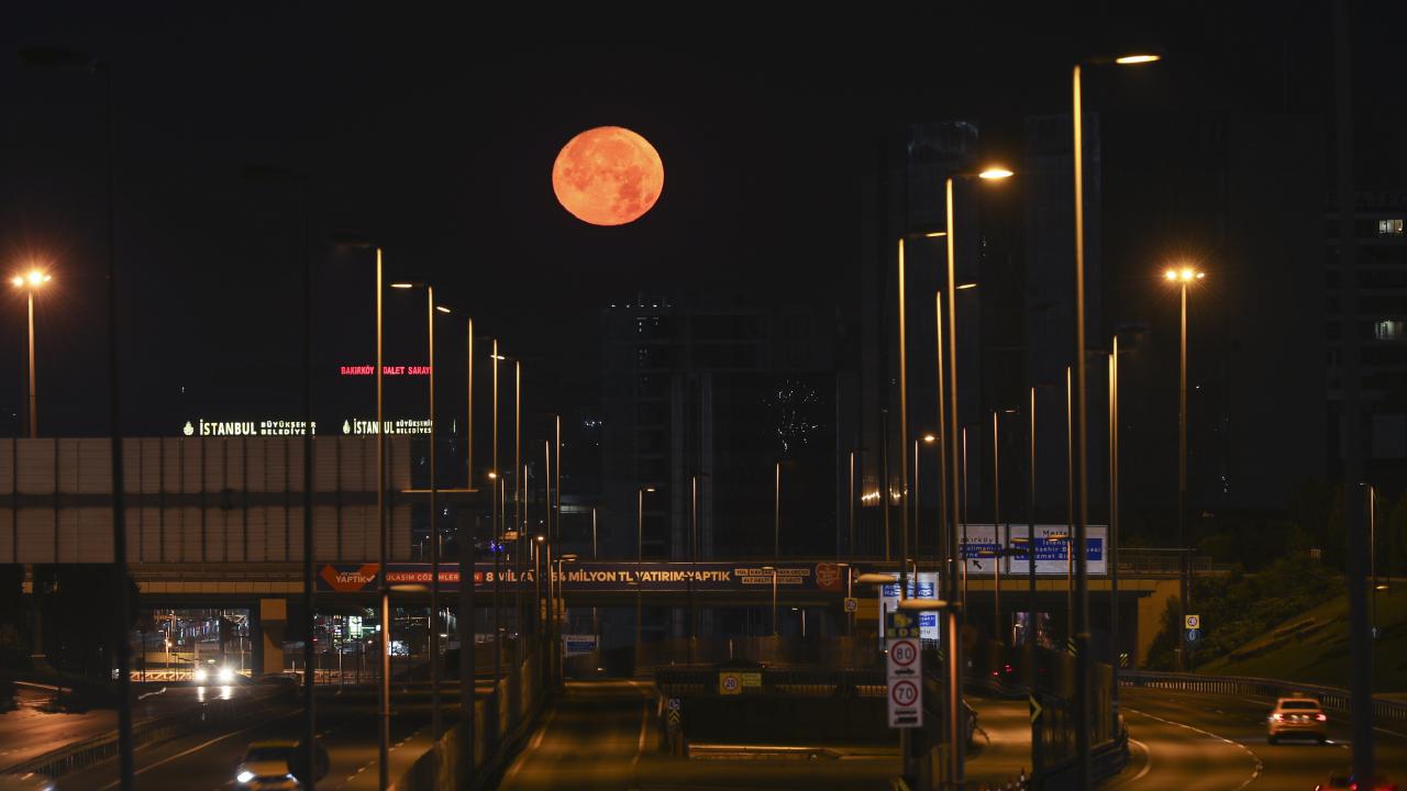 Dolunay, İstanbul'da Sultanahmet Camisi ve Ayasofya-i Kebir Cami-i Şerifi ile güzel görüntü oluşturdu.