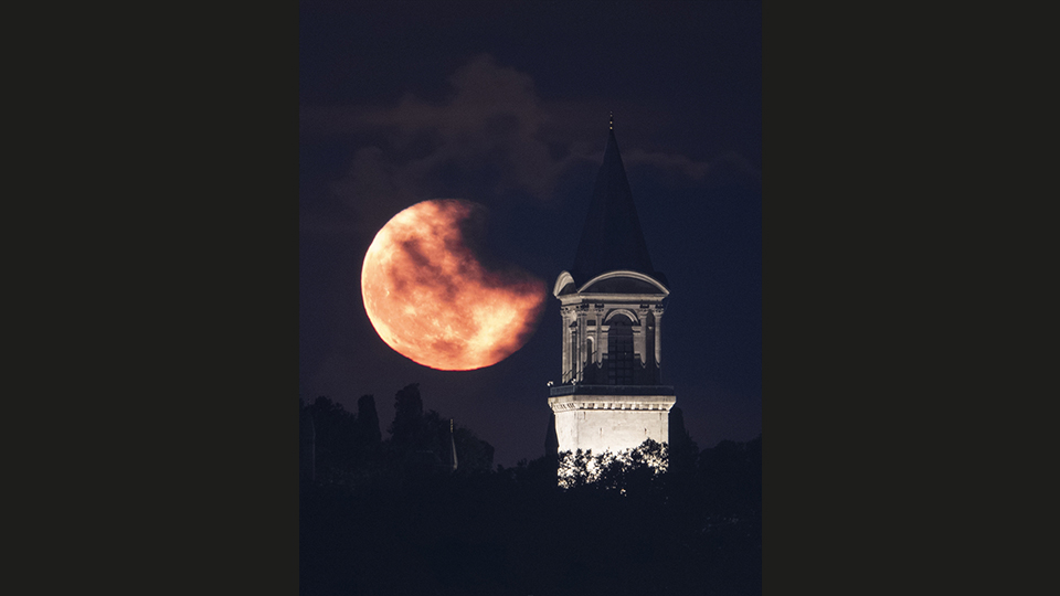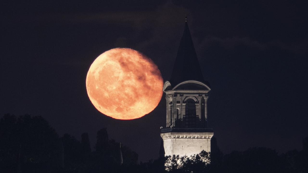 İstanbul'da dolunay, Topkapı Sarayı'nda bulunan Adalet Kulesi ile birlikte görüntülendi.