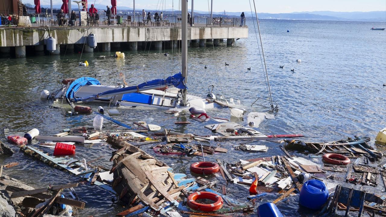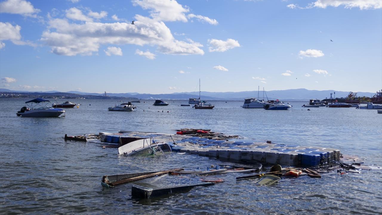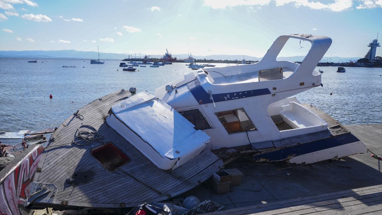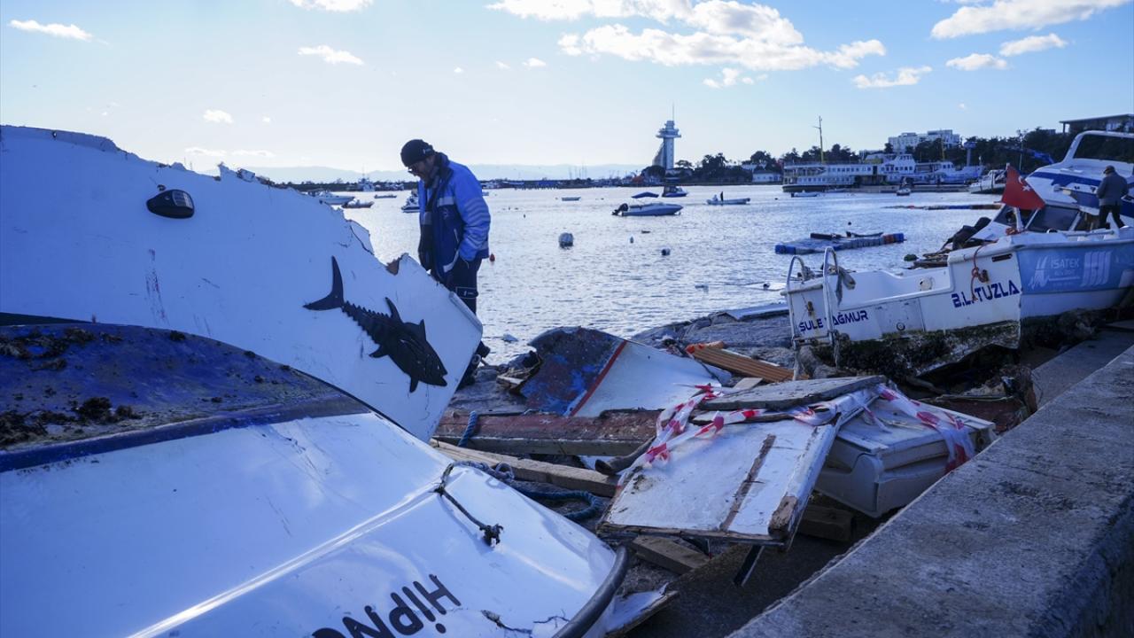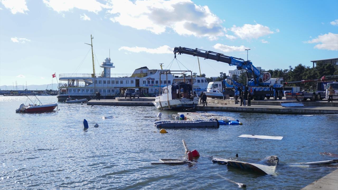 Deniz yüzeyinde kalan ve kıyıya vuran parçaların temizliği yapılırken, hasar alan tekneler ise vinç yardımıyla kurtarılmaya çalışılıyor. Ayrıca dalgaların karaya getirdiği atıkların da temizlenmesi için çalışma yapılıyor.