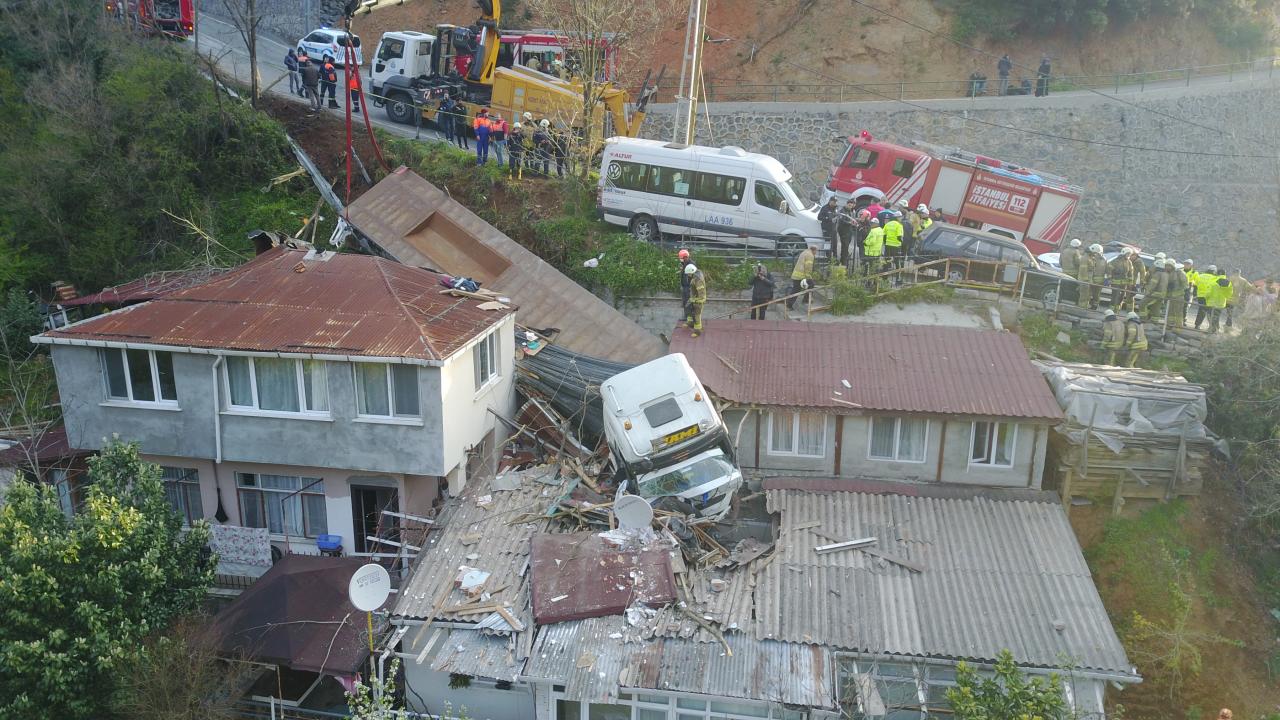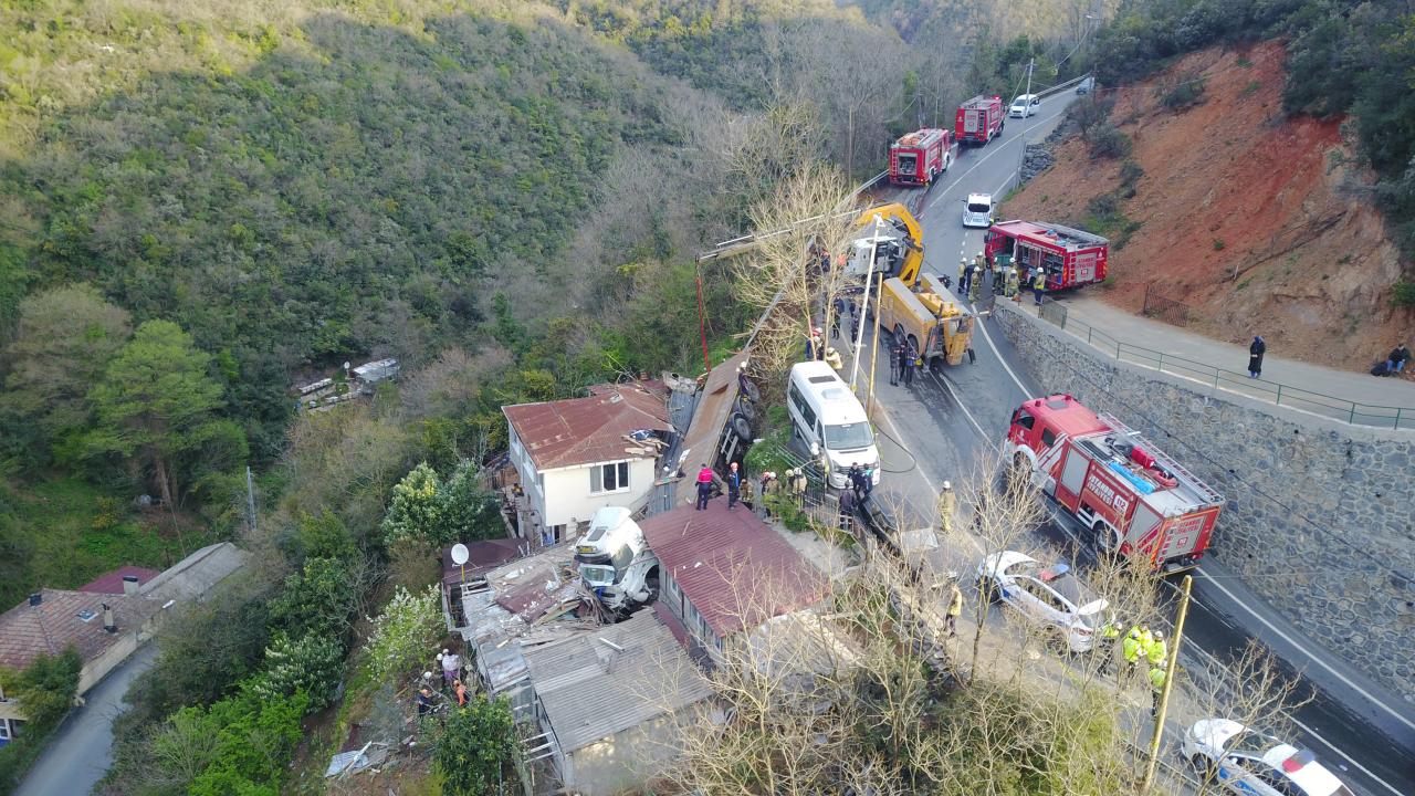 Emniyet ekipleri caddeyi trafiğe kapatırken, itfaiye ekipleri de gecekonduda mahsur kalan İbrahim, Ayşe, Rafet, Furkan ve Türkan Tosun ile tırın sürücüsü Remzi Bingöl’ü kurtarmak için çalışma başlattı.