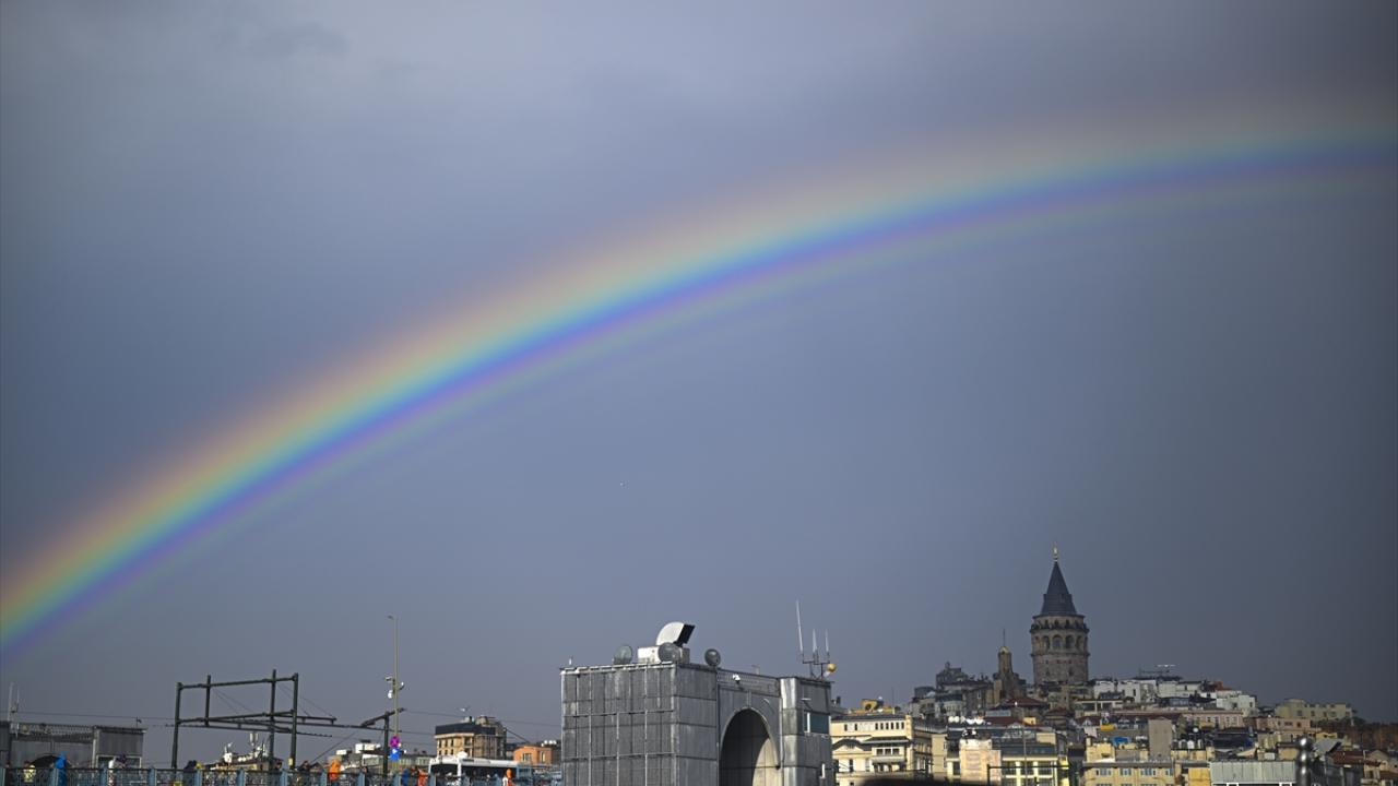 Şehrin pek çok noktasında net bir şekilde görülebilen gökkuşağı, özellikle Boğaz manzarasıyla birleşerek adeta bir kartpostalı andıran görüntüler oluşturdu.