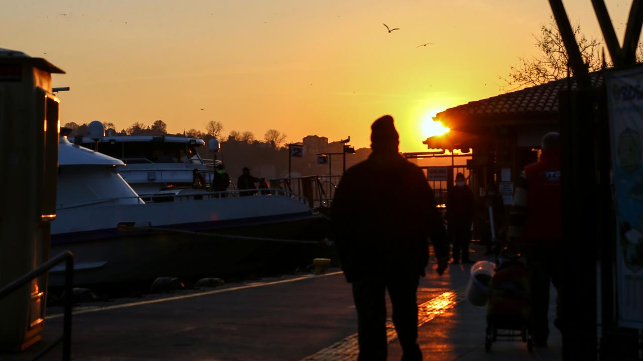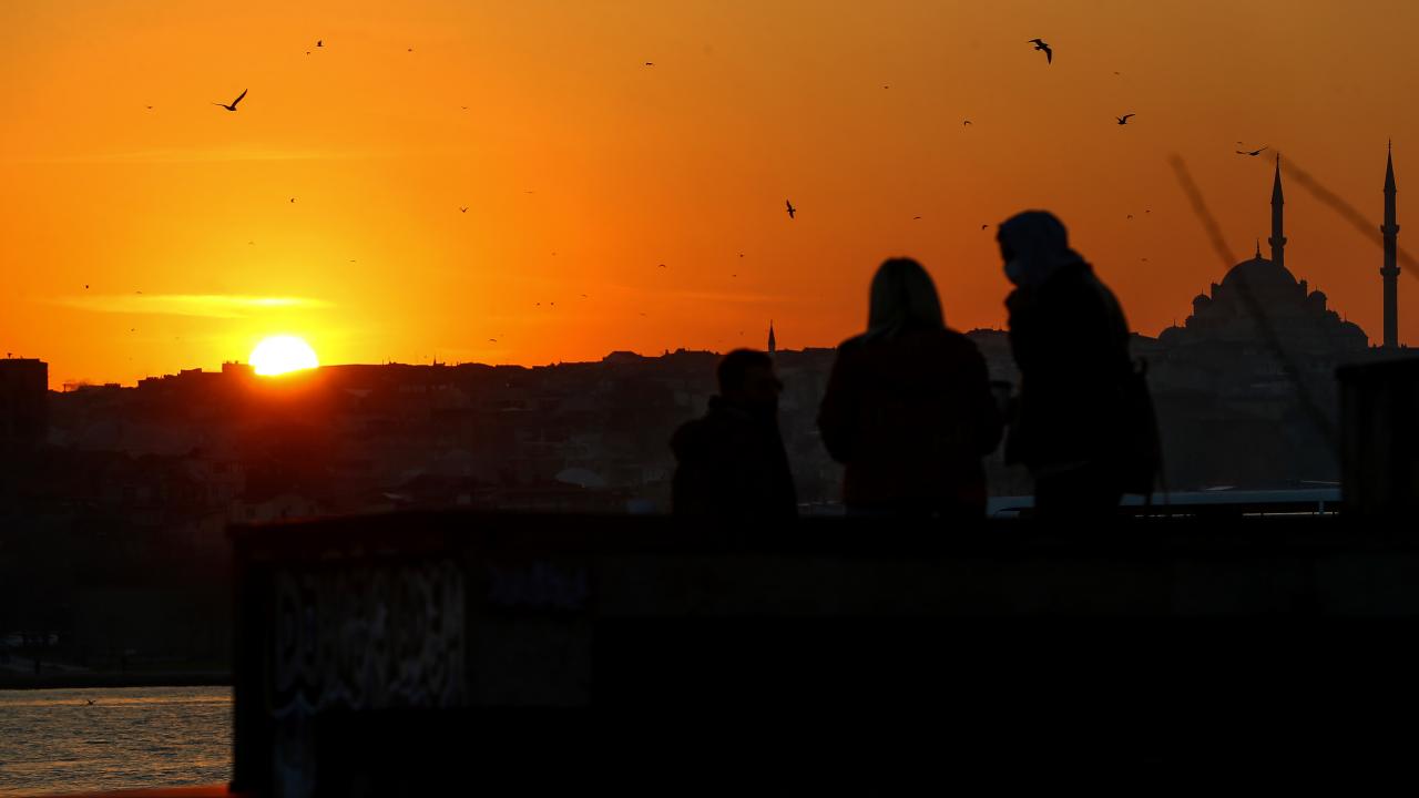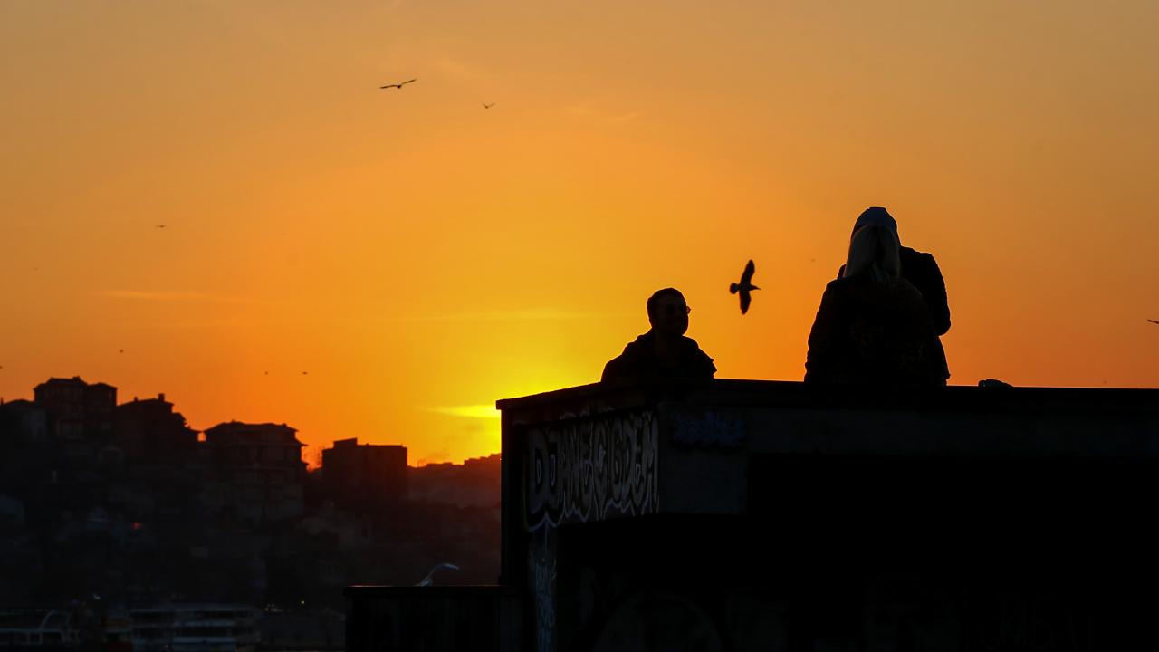 İstanbul'da gün batımı, Galata ve Eminönü civarında güzel görüntü oluşturdu.