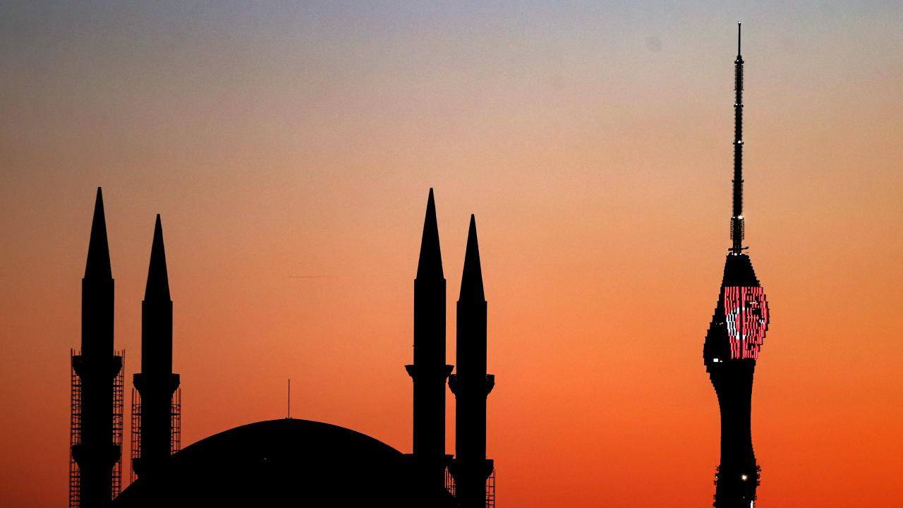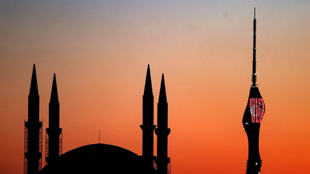 İstanbul'da Çamlıca Kulesi, gün batımında görüntülendi.