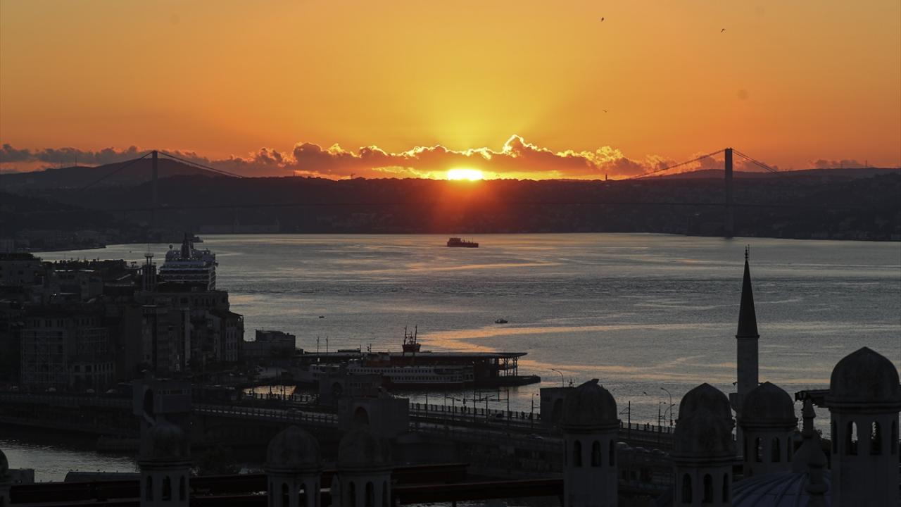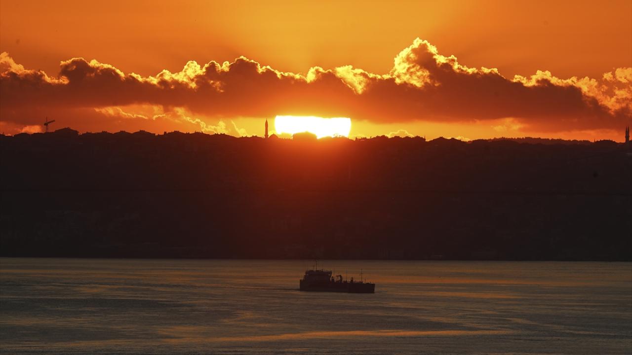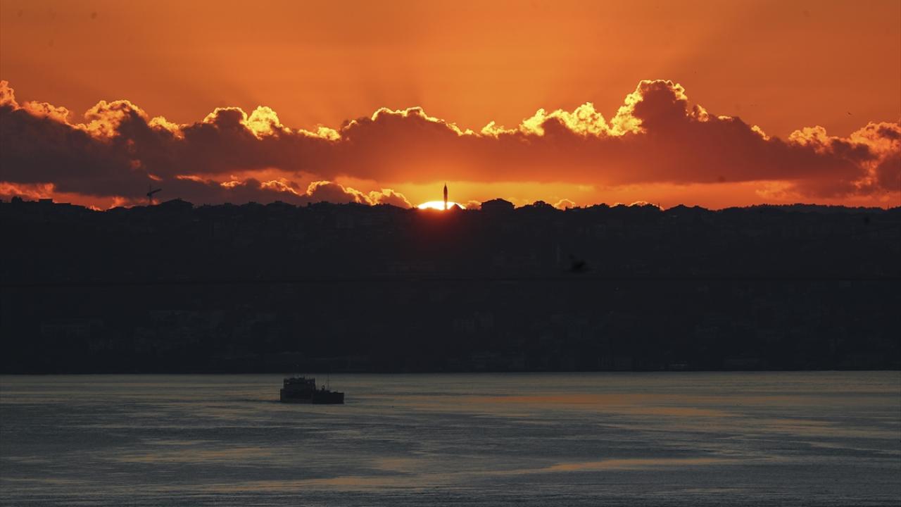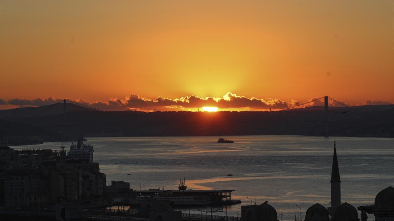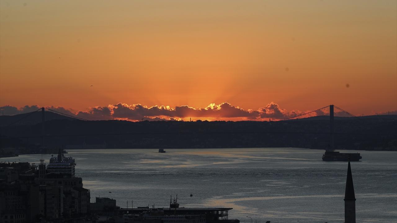 İstanbul Boğazı, gün doğumunda güzel görüntüler oluşturdu.
