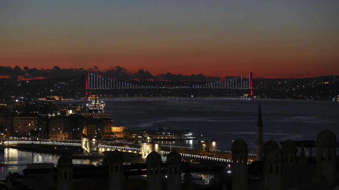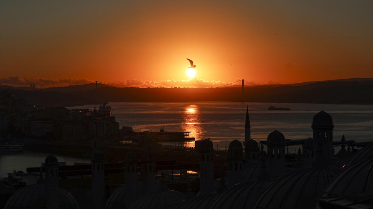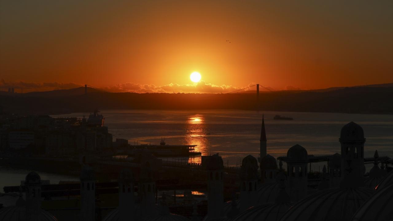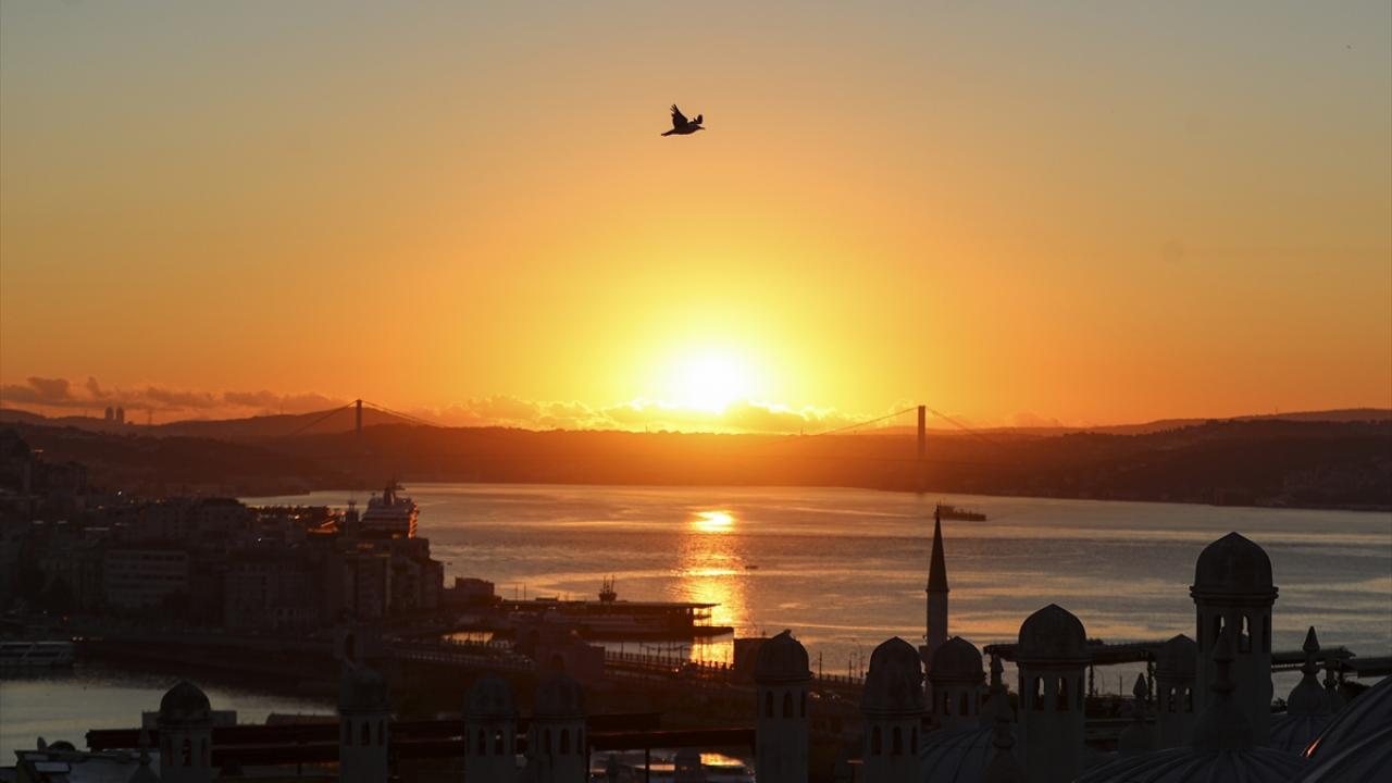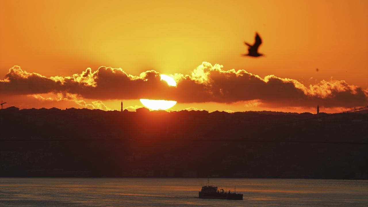 İstanbul Boğazı, gün doğumunda güzel görüntüler oluşturdu.