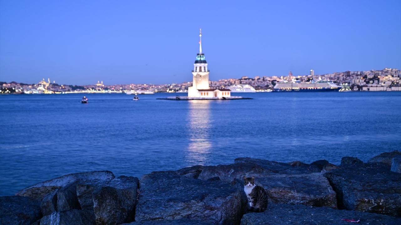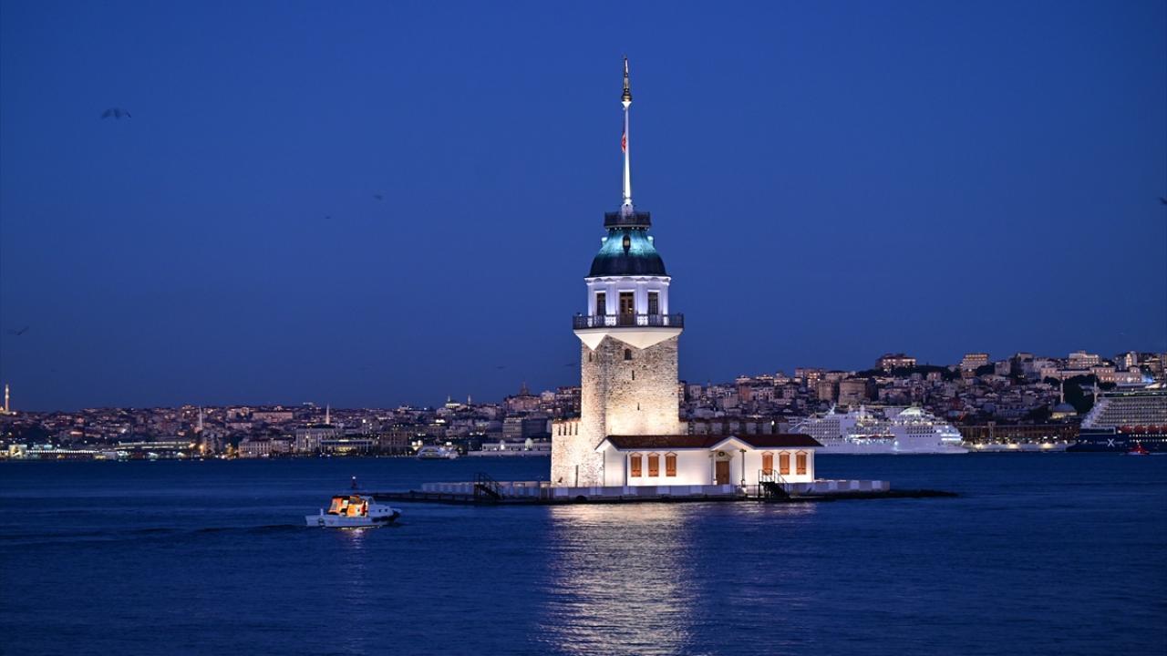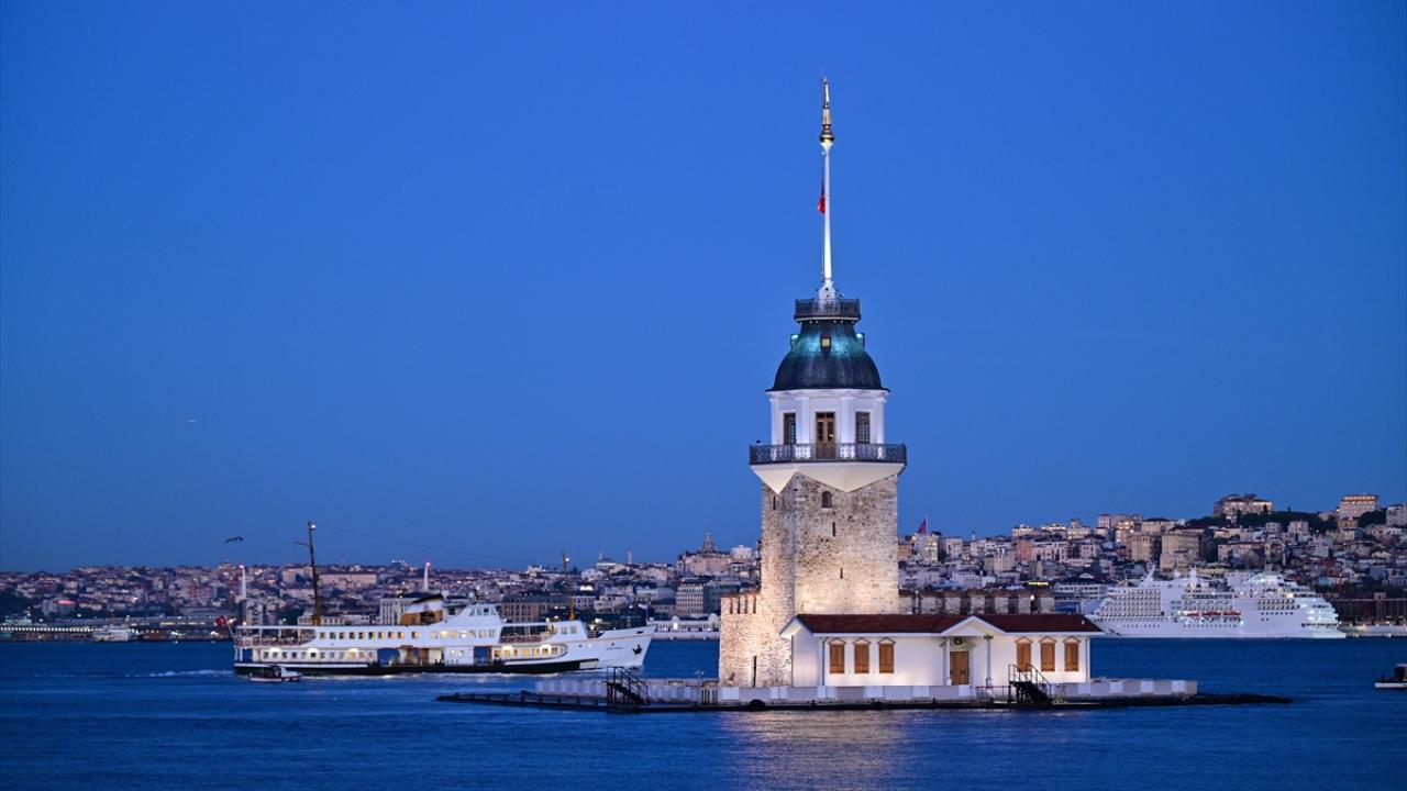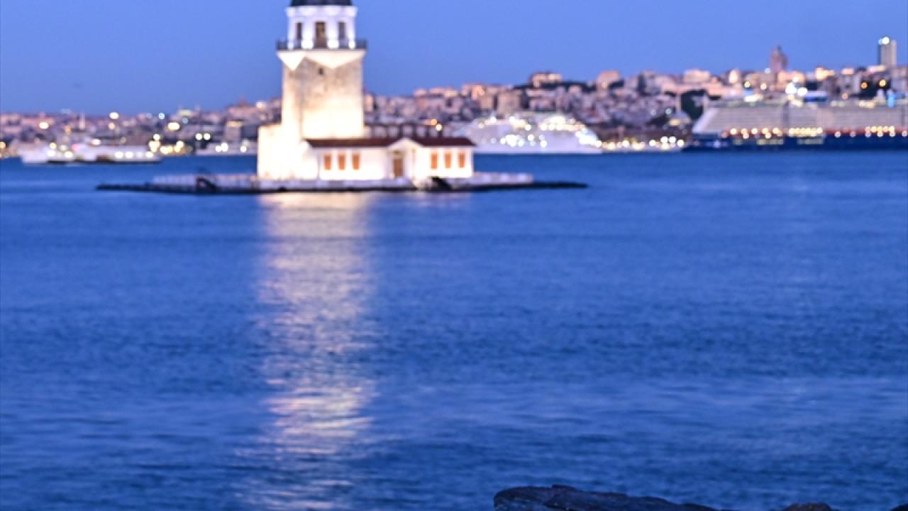 İstanbul'da gün doğumu Kız Kulesi ile güzel görüntüler oluşturdu.