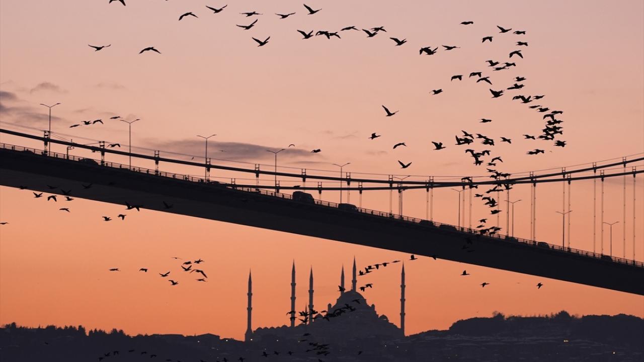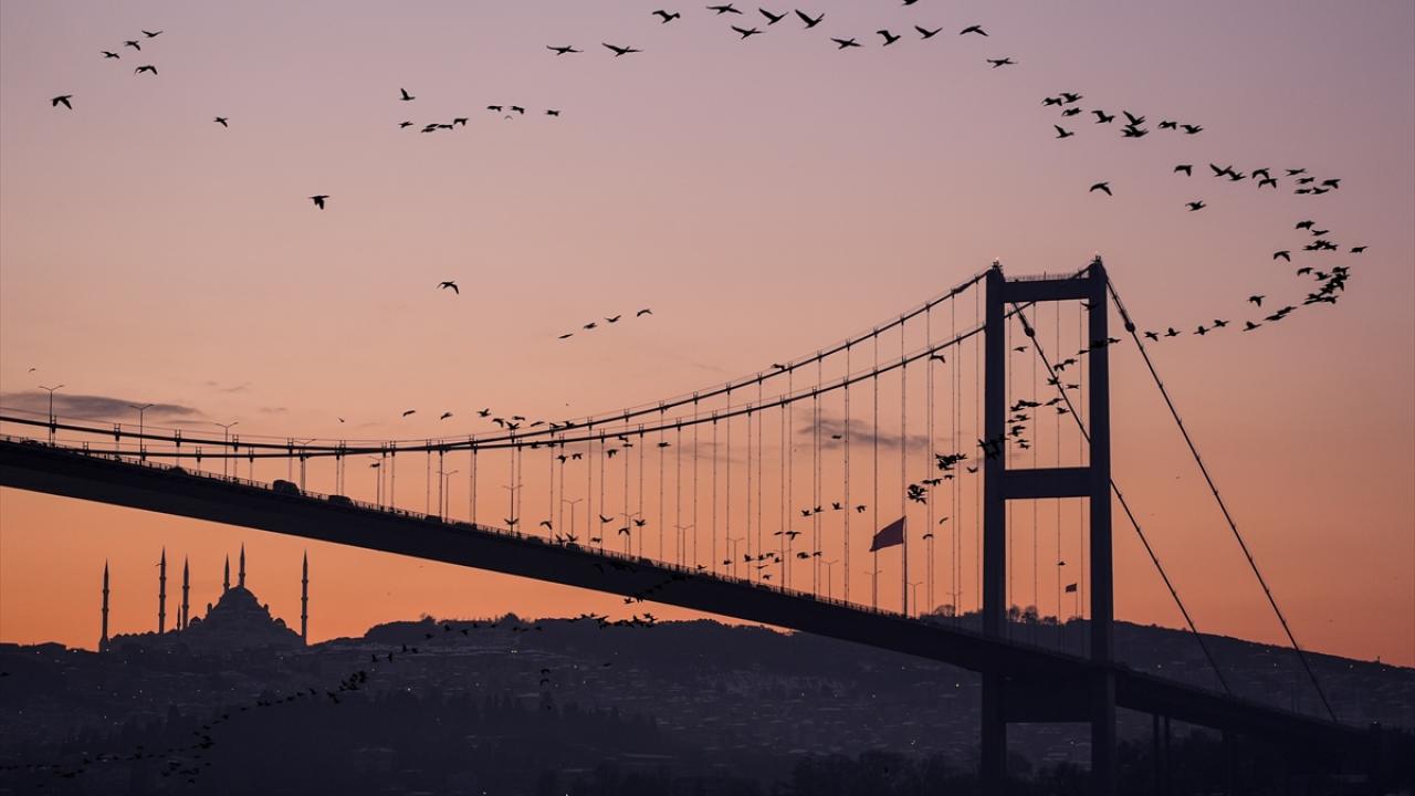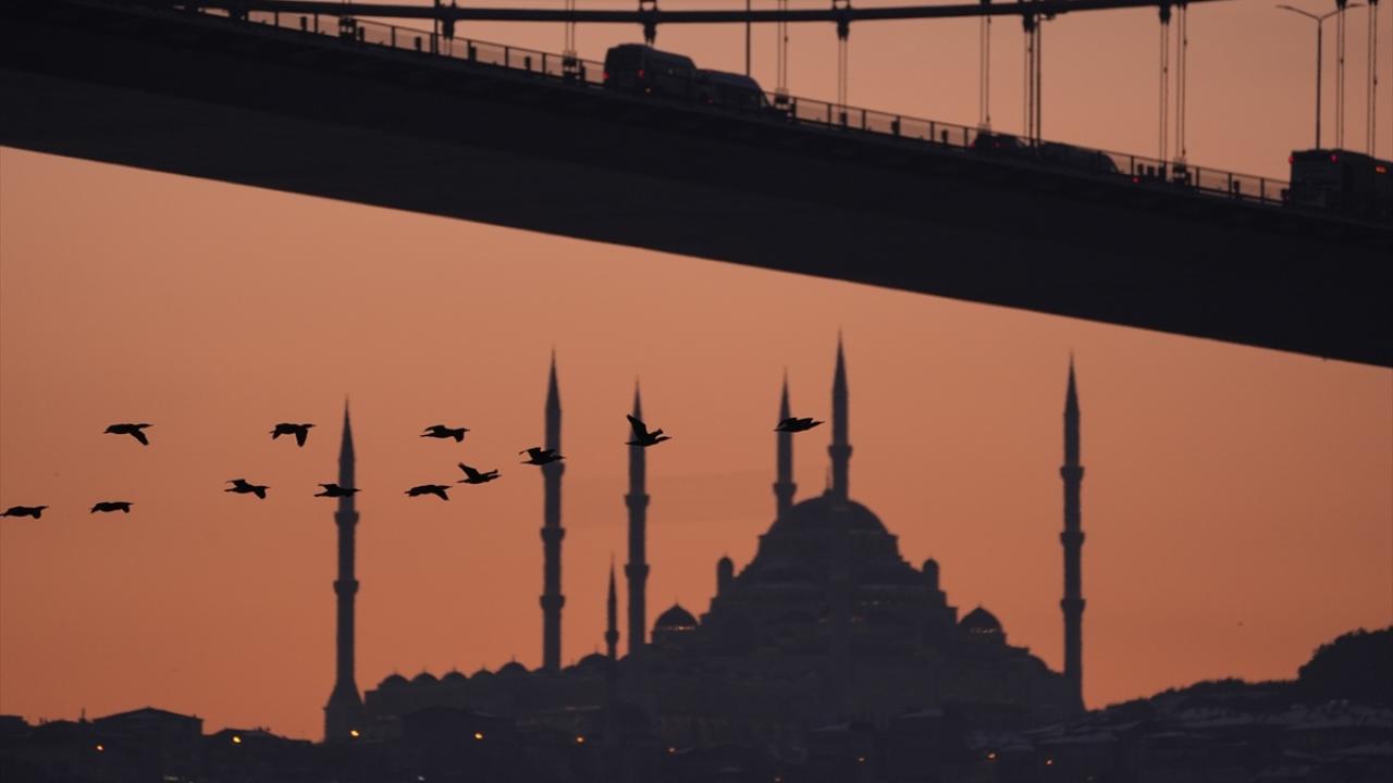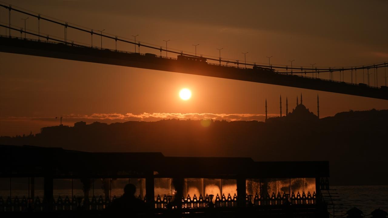 İstanbul'da gün doğumu, Büyük Çamlıca Cami'si ve 15 Temmuz Şehitler Köprüsü ile görüntülendi.