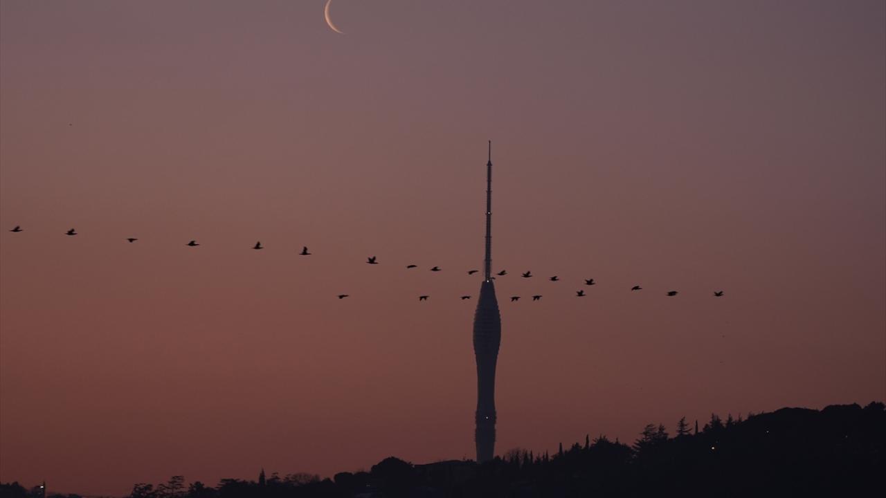 İstanbul`da Çamlıca Kulesi ve hilal gün doğumunda görüntülendi.