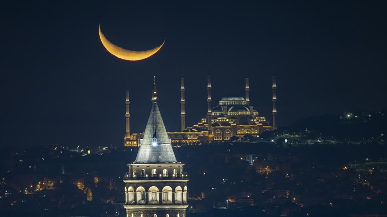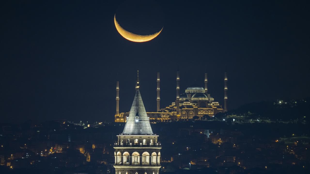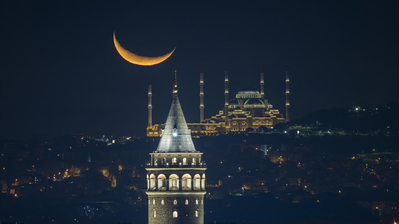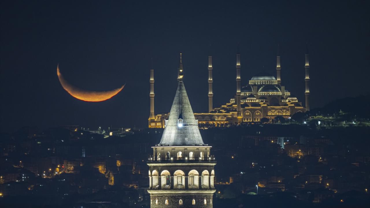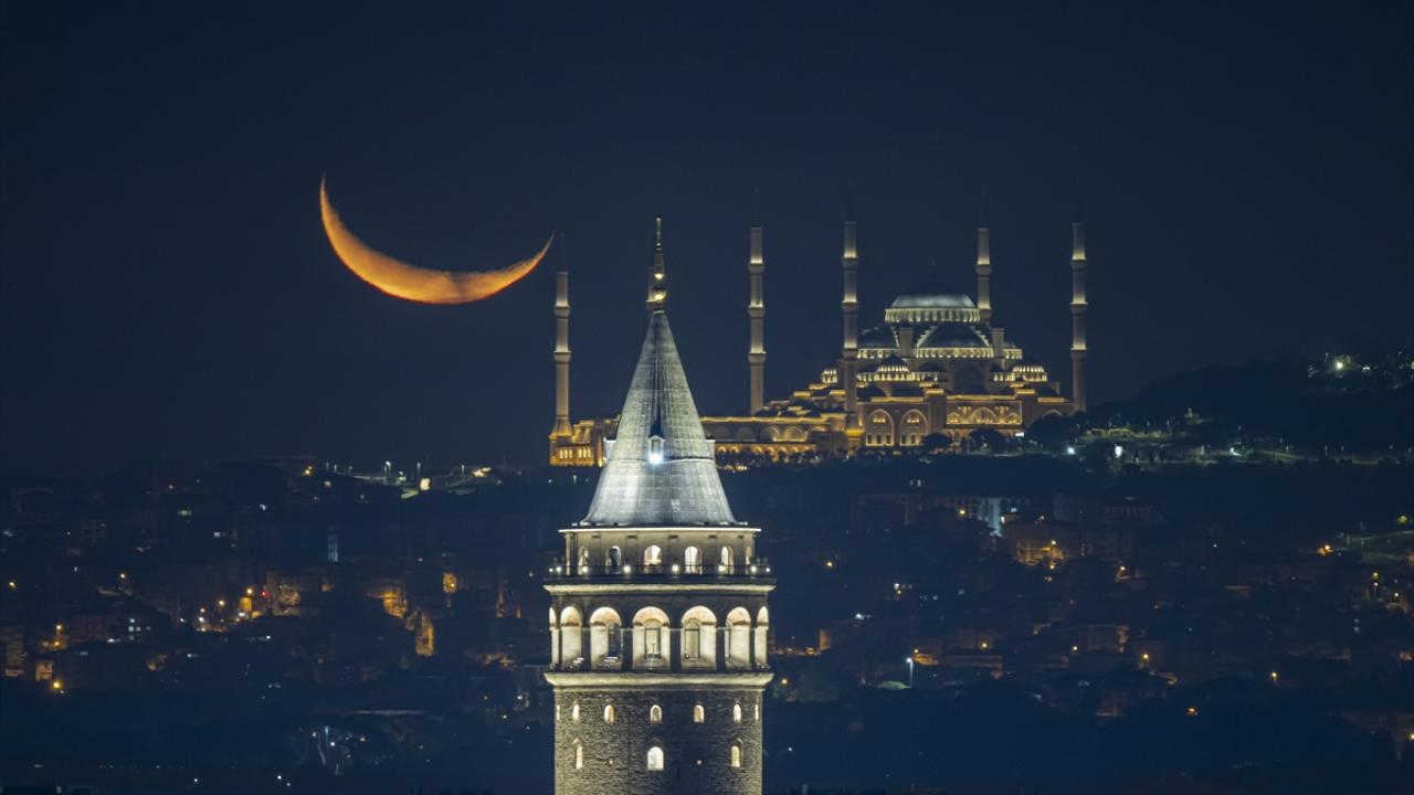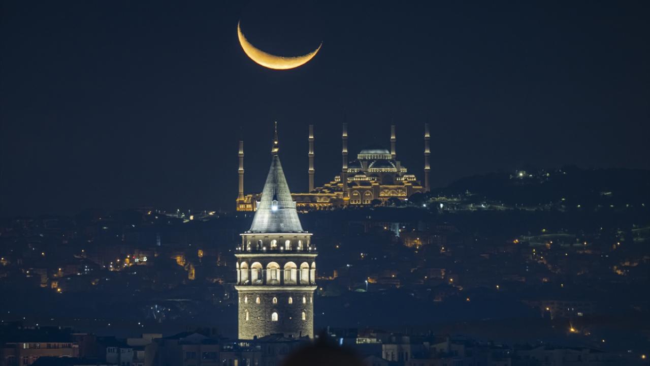 İstanbul'da hilal, Galata Kulesi ve Çamlıca Camii ile birlikte görüntülendi.
