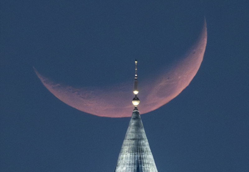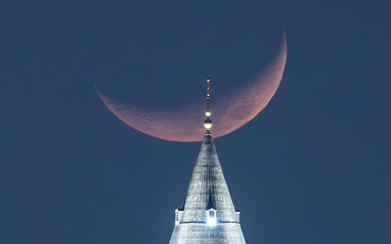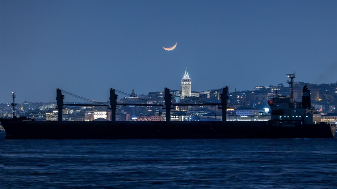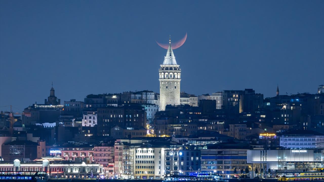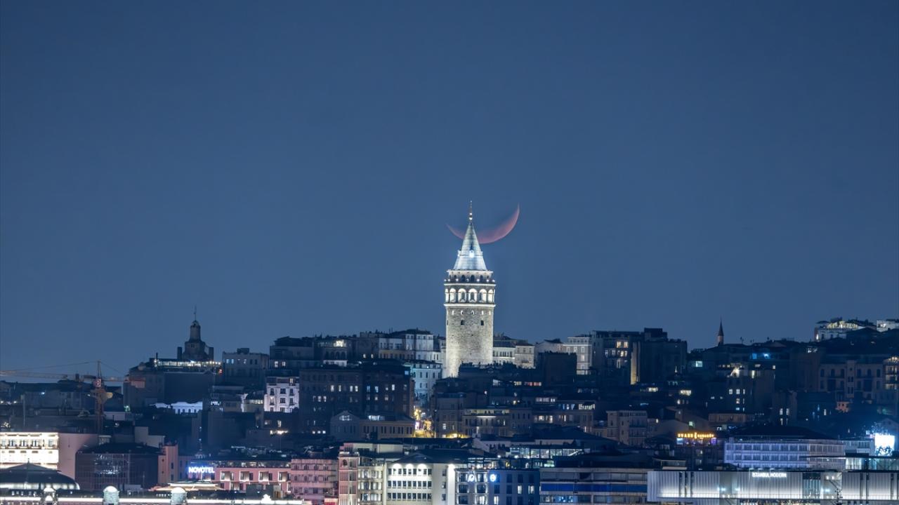 İstanbul'da hilal, Galata Kulesi ile birlikte güzel görüntü oluşturdu.