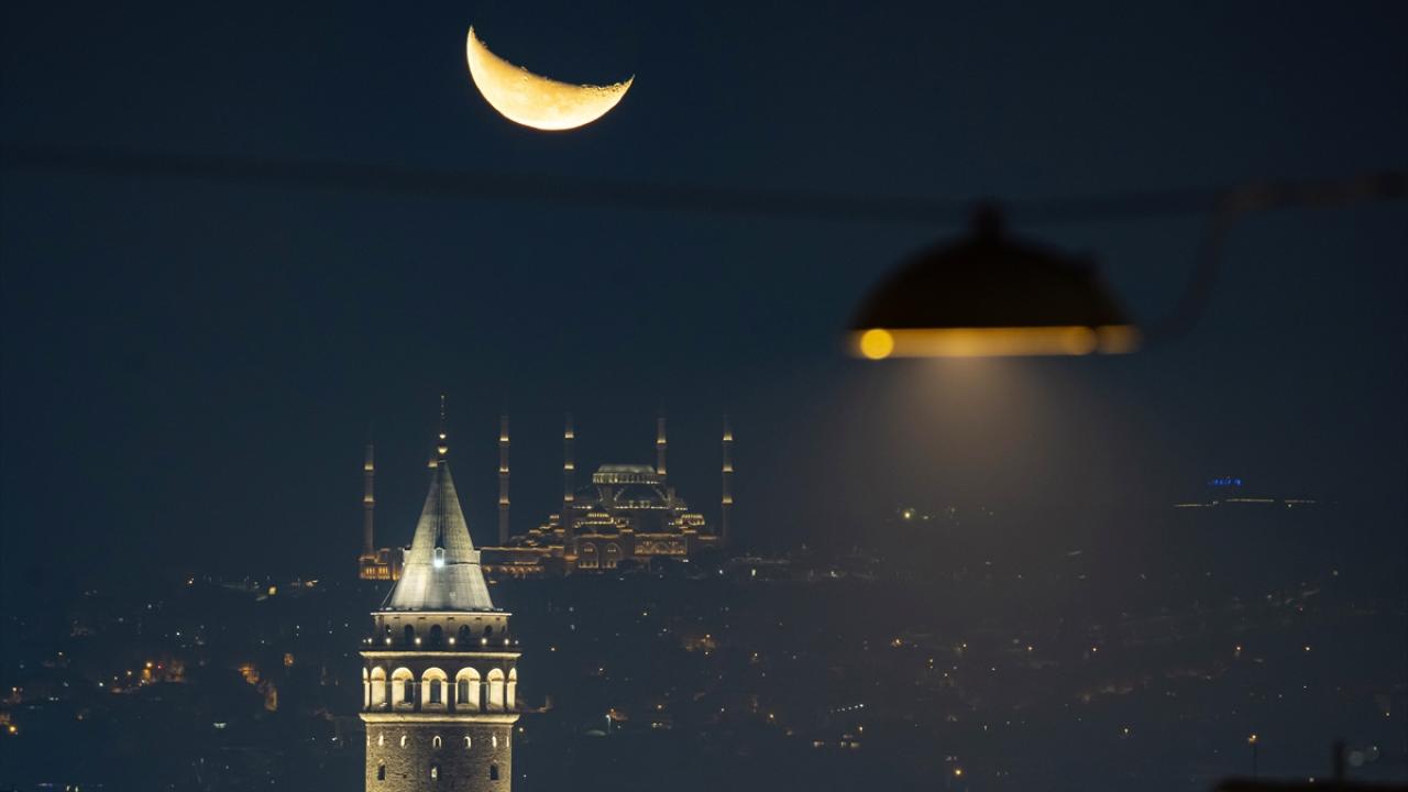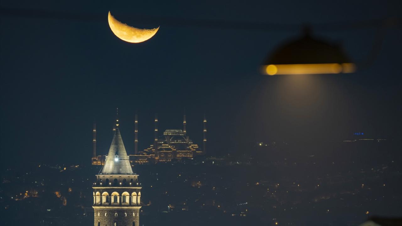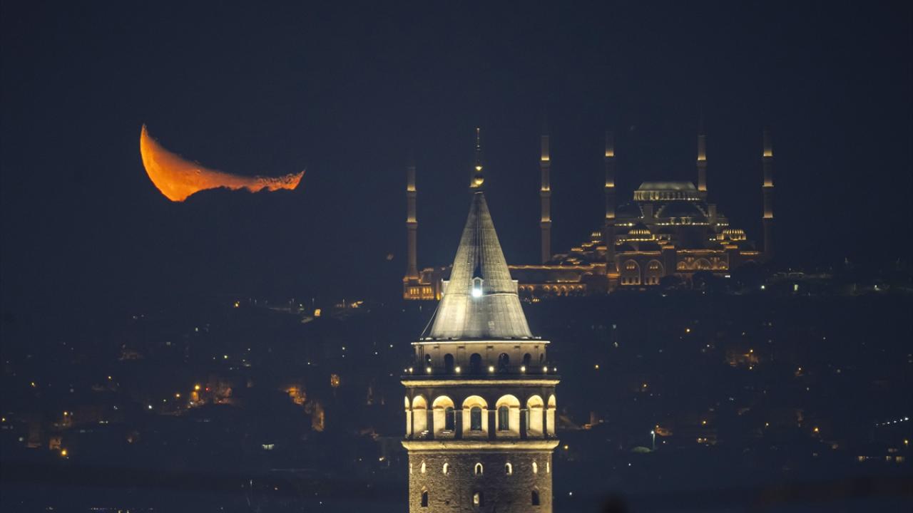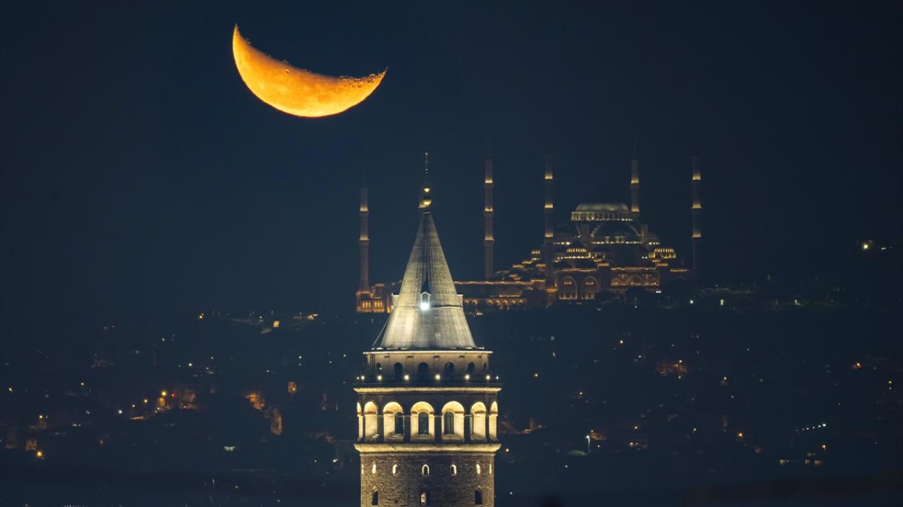 İstanbul'da hilal, Galata Kulesi ve Çamlıca Camisi ile birlikte görüntülendi.