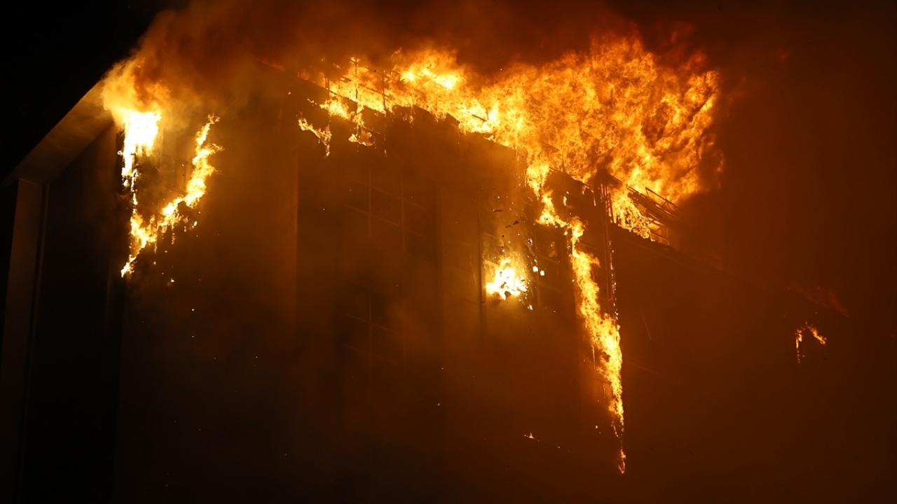İçerisinde birden fazla iş koluna ait alanın bulunduğu binada çıkan yangın, rüzgarın etkisiyle binayı etkisi altına aldı.
