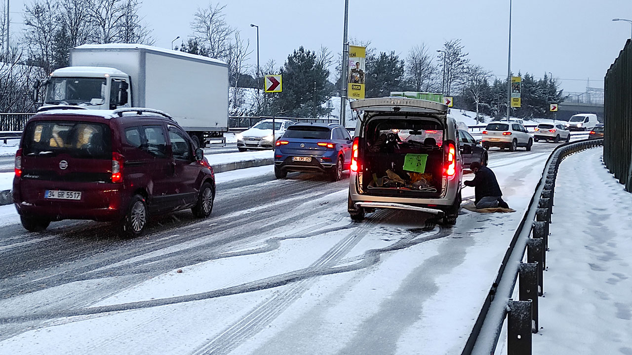Etkili olan kar yağışı 15 Temmuz Şehitler Köprüsü’nde de trafik yoğunluğuna yol açtı.