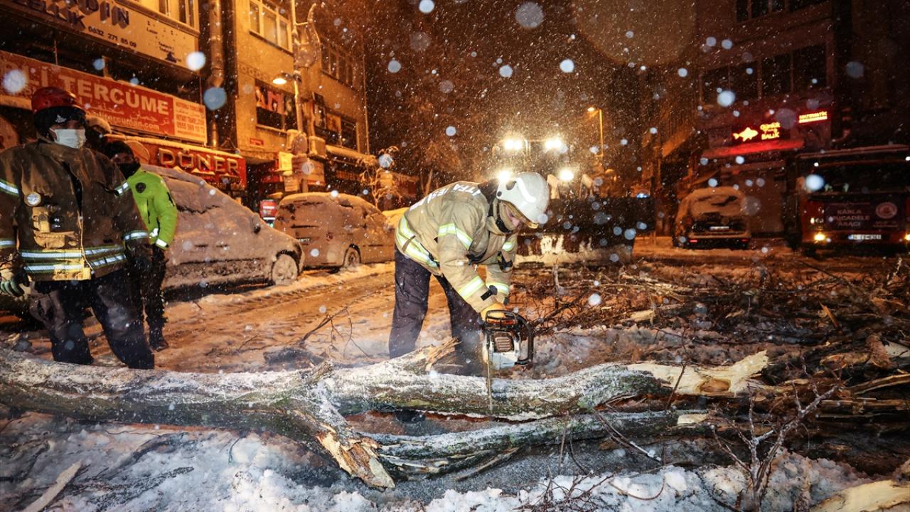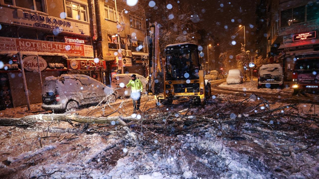 Kent genelinde etkisini sürdüren kar yağışı nedeniyle bazı bölgelerde ağaçlar devrildi. Birçok noktada karla mücadele için oluşturulan ekiplerin çalışmaları devam ediyor.