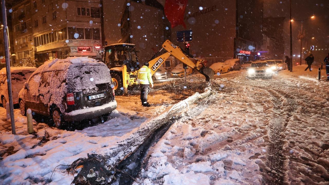 İstanbul'da kar yağışı bazı bölgelerde ağaçları devirdi