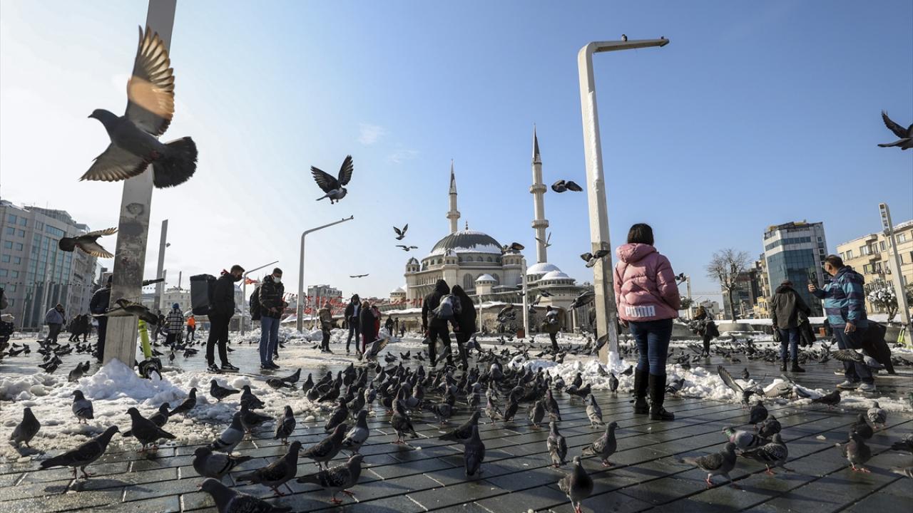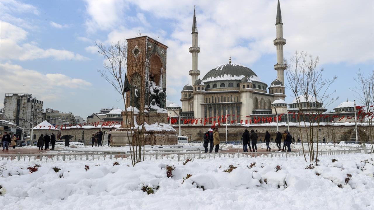 İstanbul`da kar yağışı sonrası Taksim meydanı ve çevresi beyaz örtüyle kaplandı.