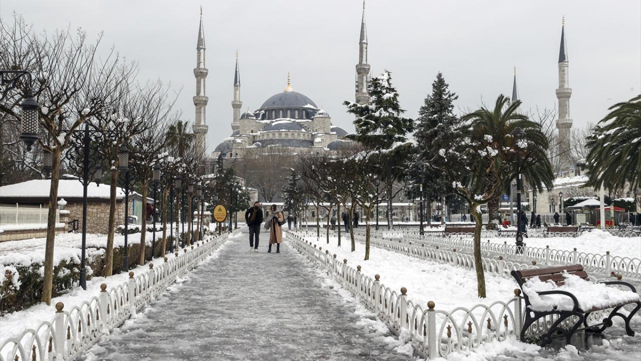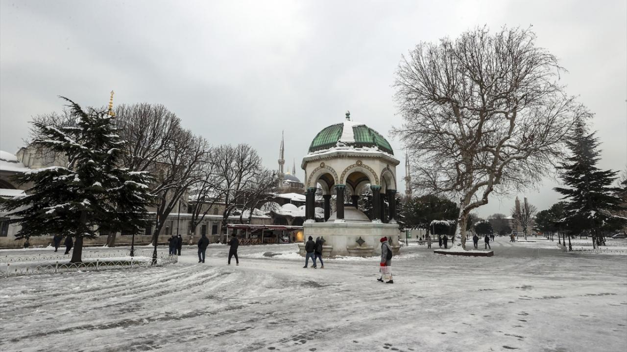 Sultanahmet Meydanı ve çevresi beyaz örtüyle kaplandı.