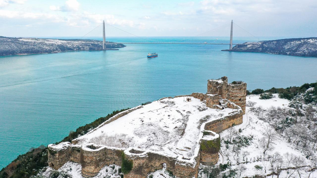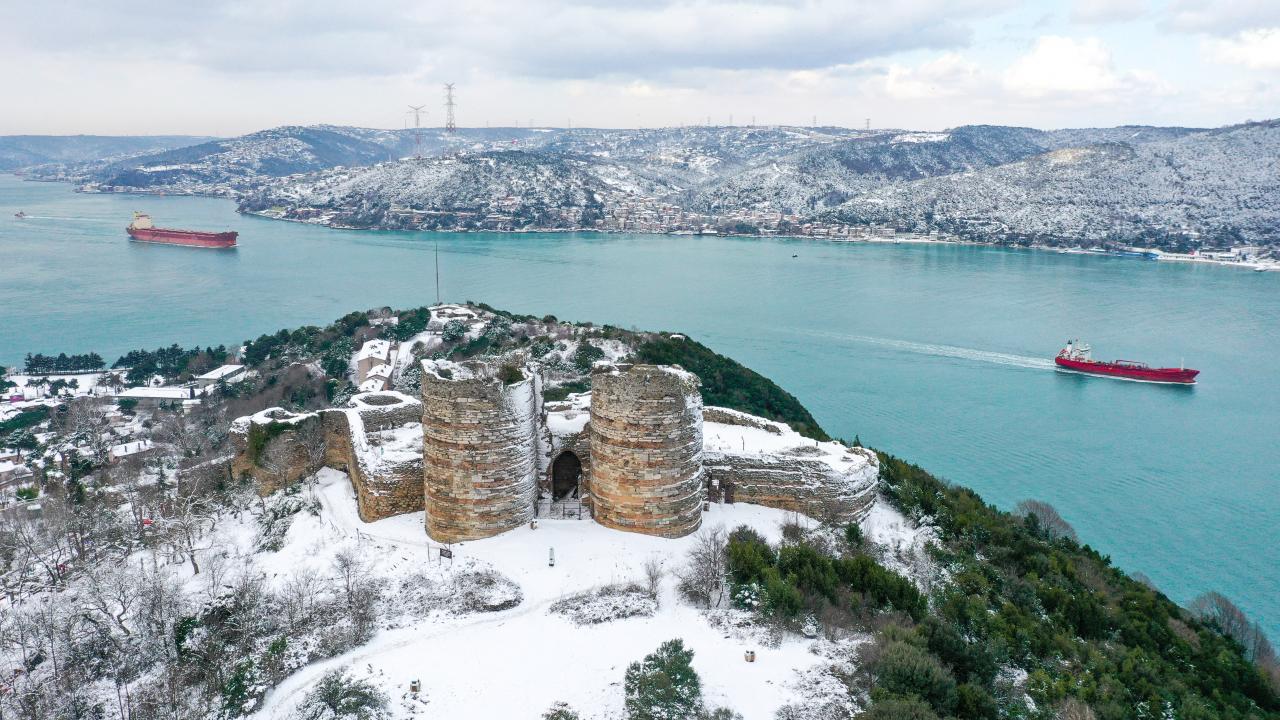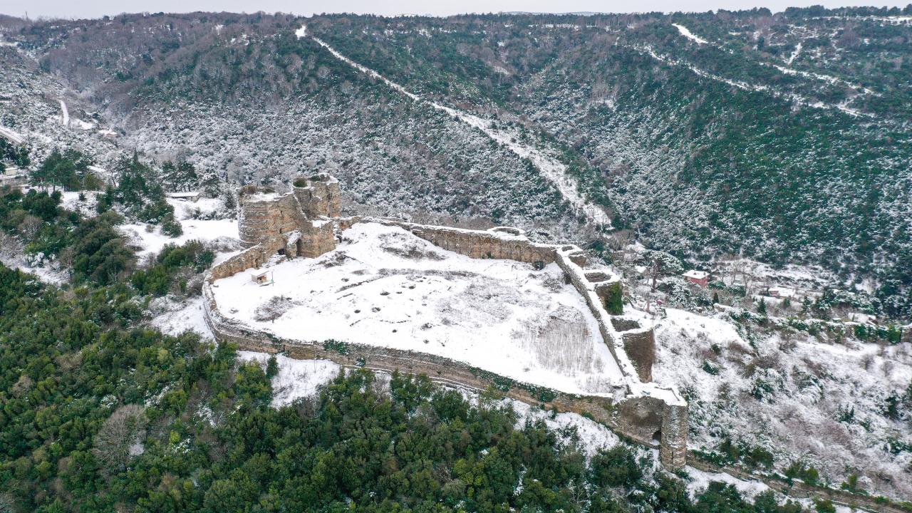 İstanbul`da kar yağışı Yoros Kalesi ve çevresinde etkili oldu.