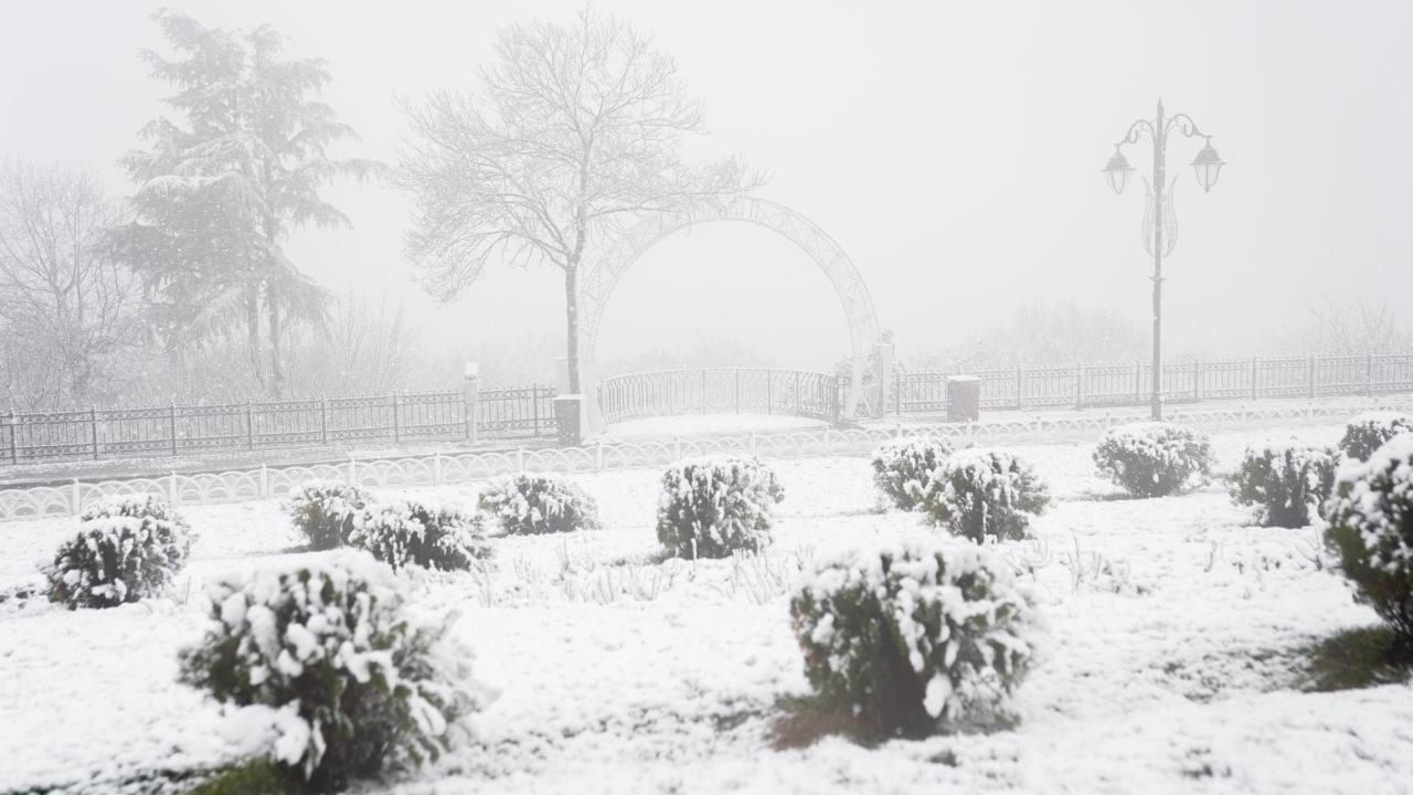 Kar yağışının olduğu bölgelerde park halindeki araçlar ile yol kenarları ve yeşil alanlar, beyaz örtüyle kaplandı.