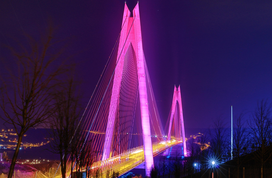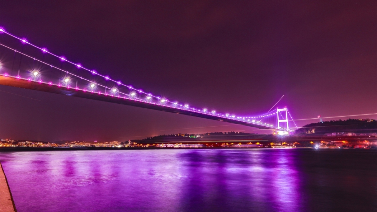 İstanbul'un sembol yapılarından 15 Temmuz Şehitler Köprüsü, Fatih Sultan Mehmet Köprüsü ve Yavuz Sultan Selim Köprüsü, Dünya Epilepsi Günü dolayısıyla mor ışıkla aydınlatıldı.
