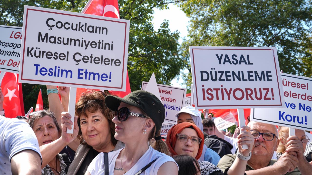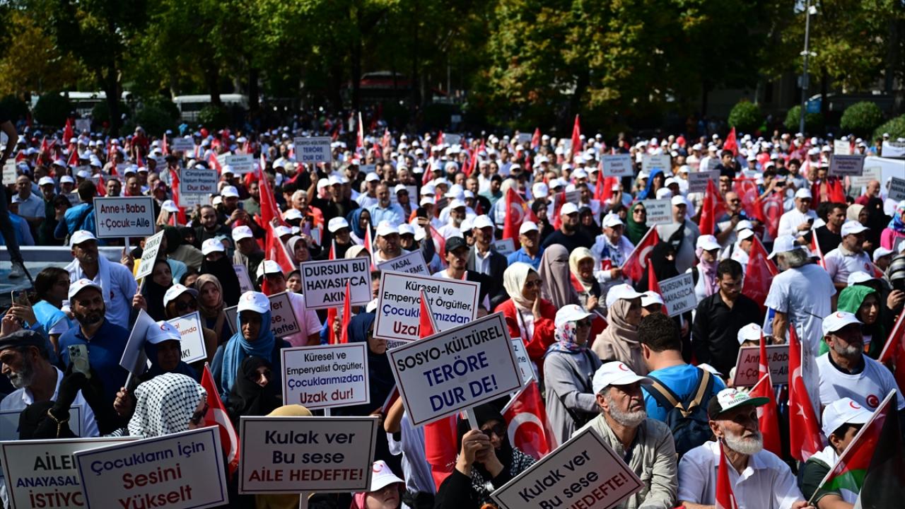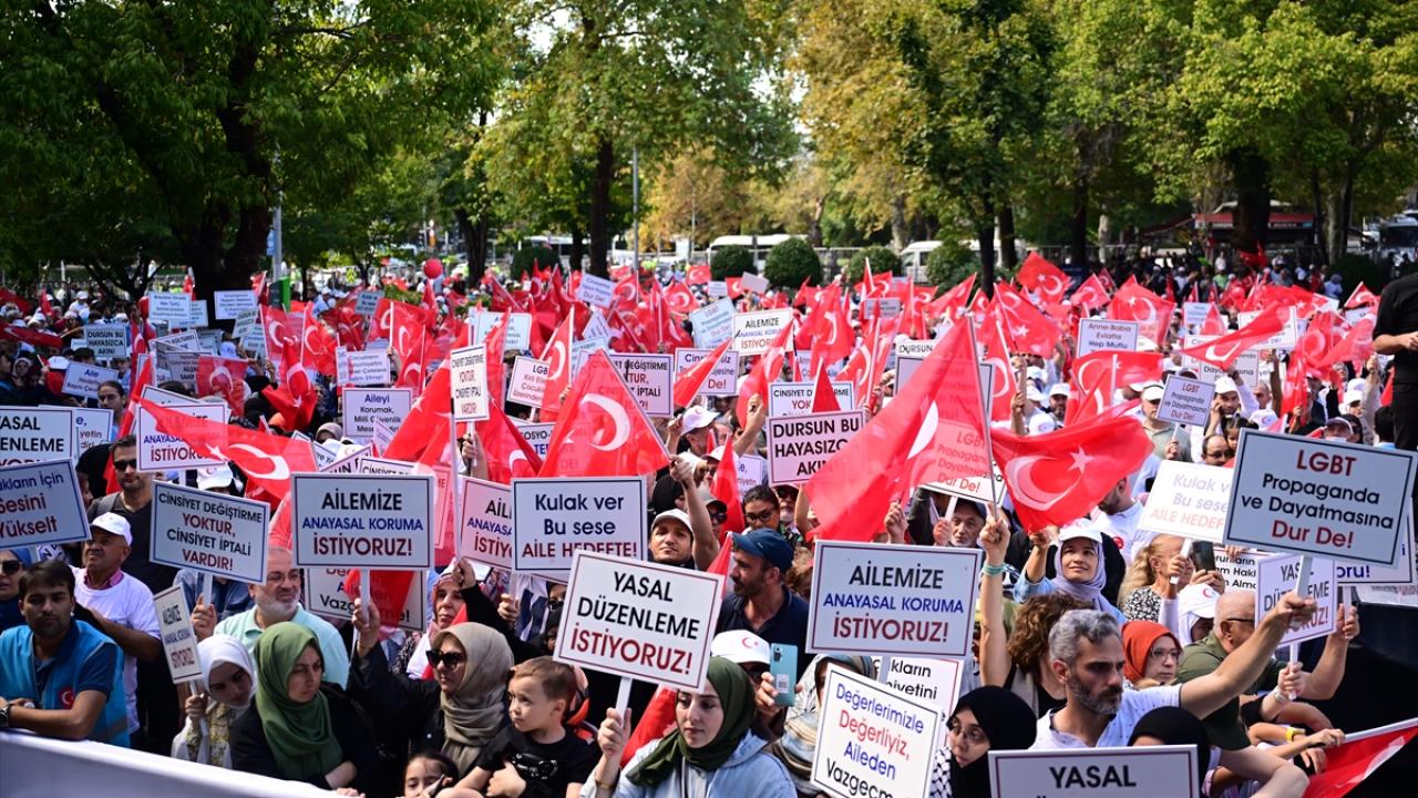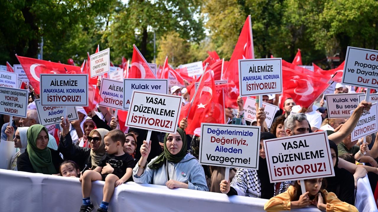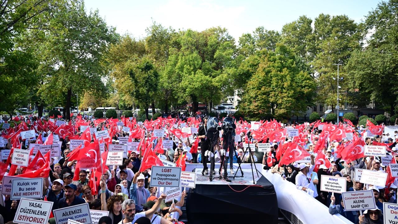 Yaklaşık 400 sivil toplum kuruluşunun destek verdiği etkinlik için bir araya gelen kalabalık, "Dursun bu Hayasızca Akın", "Aileyi korumak milli güvenlik meselesidir", "Sosyokültürel teröre dur de" , "Ailemize anayasal koruma istiyoruz" , "Aileye savaş açanlara geçit verme", "Aile hedefte başını çevirme", "Çocuklar için sesini yükselt" yazılı dövizler taşırken, LGBT dayatmasına karşı sloganlar attı.