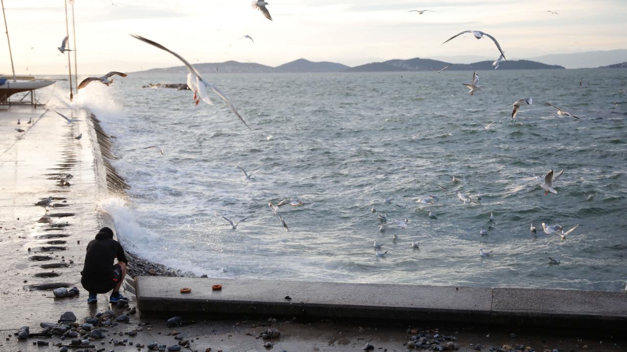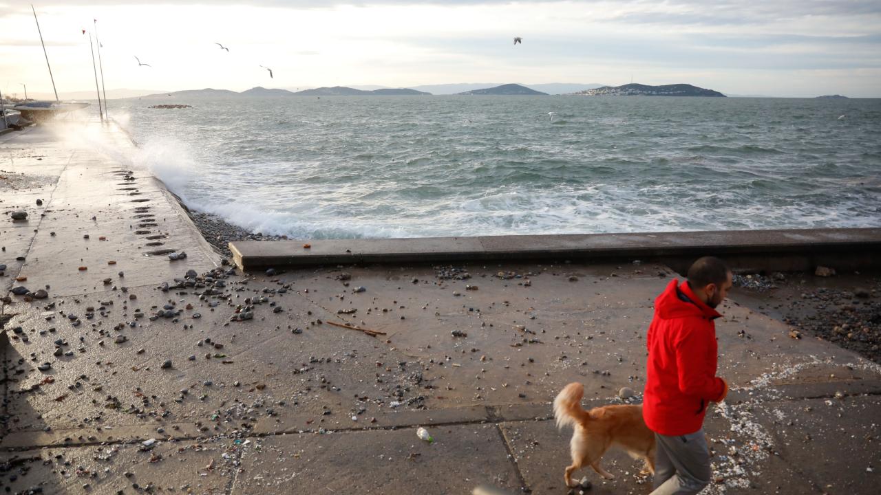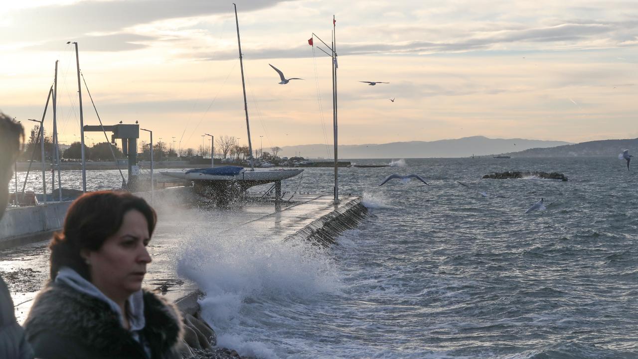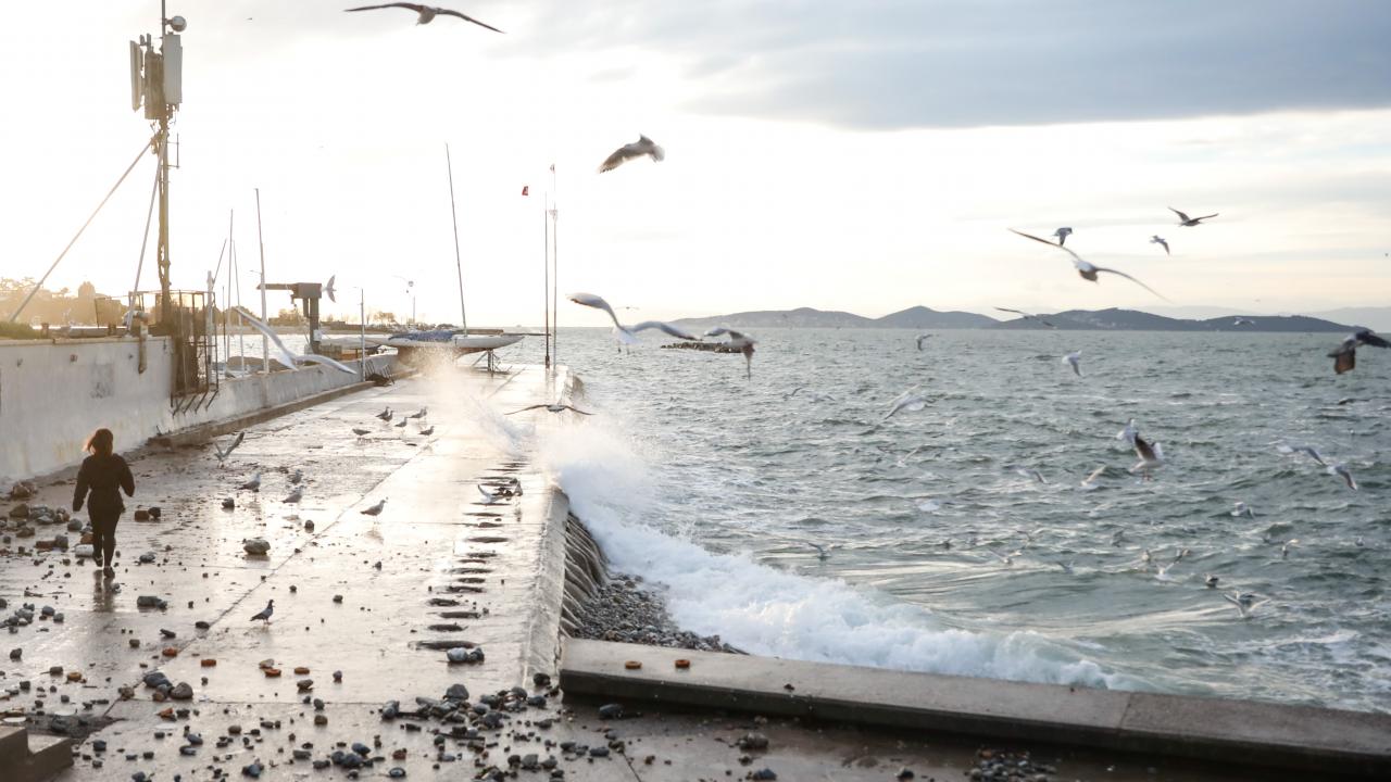 İstanbul'da sabah saatlerinden itibaren etkisini gösteren lodos, Kadıköy Caddebostan sahilde dalgaların oluşmasına neden oldu.