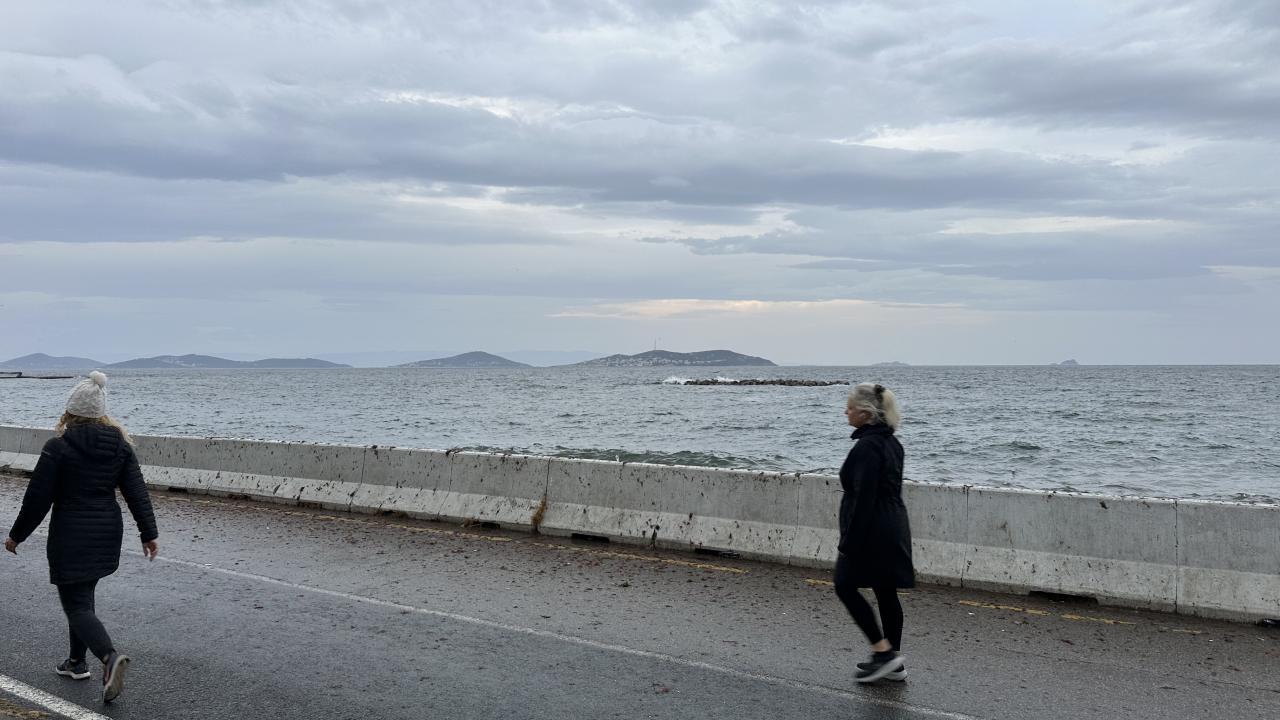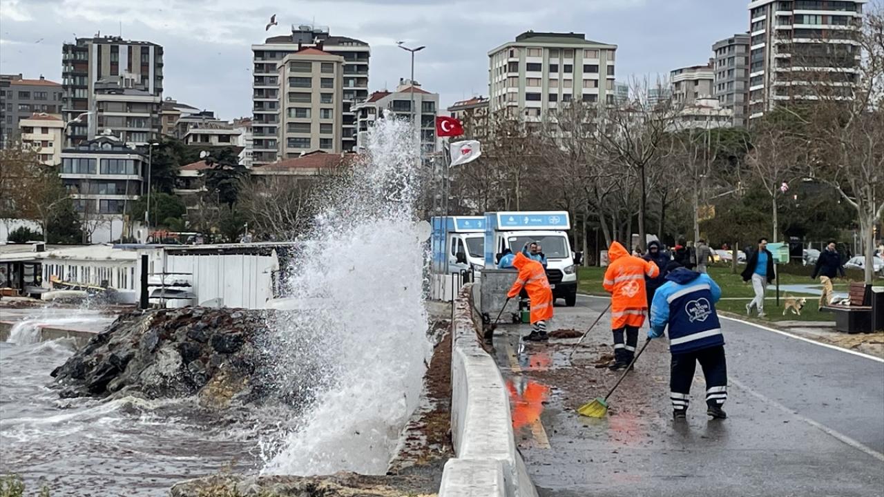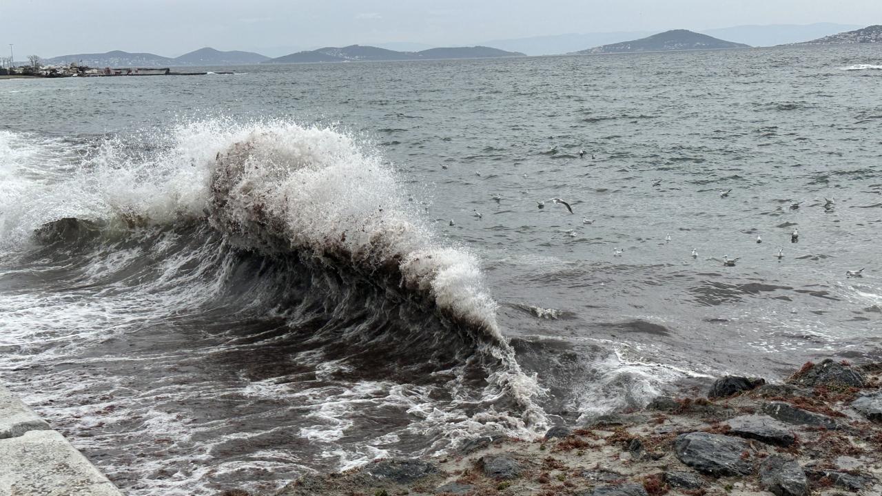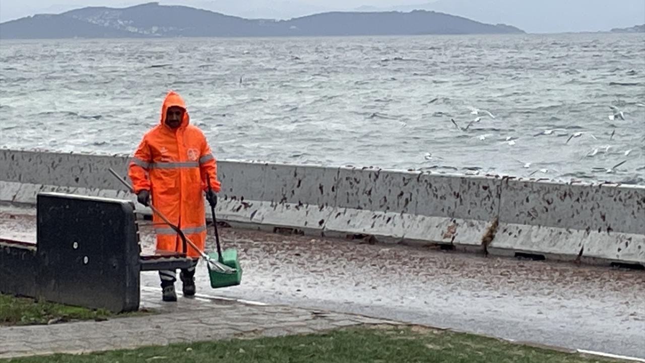 Lodos nedeniyle yüksek dalgalar oluşurken, dalgaların getirdiği kırmızı yosunlar Kadıköy`de Caddebostan sahilini kapladı.