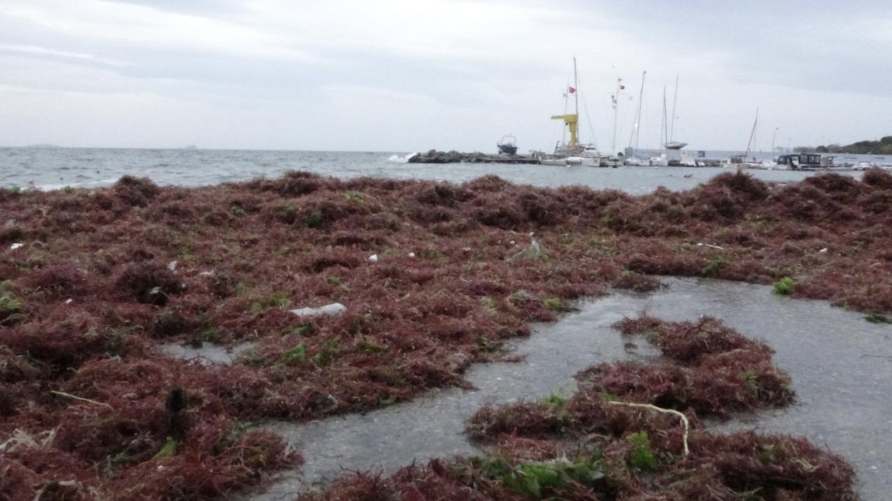 İstanbul'da lodos: Kırmızı yosunlar karaya vurdu
