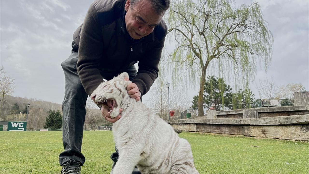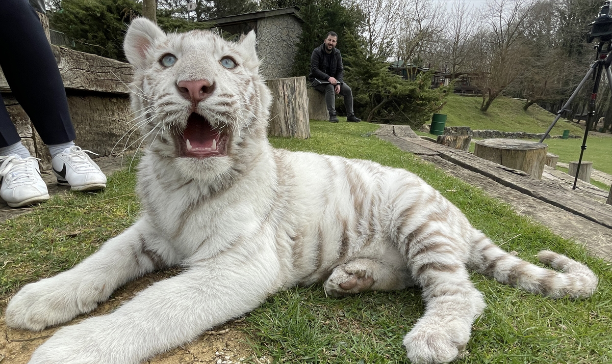 Özel bir kafeste tutulan ve özenle ilgilenilen hayvanları ağırlayan Polonezköy Hayvanat Bahçesi ve Doğal Yaşam Parkı yetkilisi Cem Sanlı, ilk kez albino Bengal kaplanı gördüğünü söyledi.