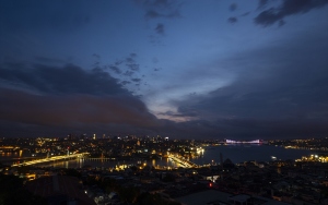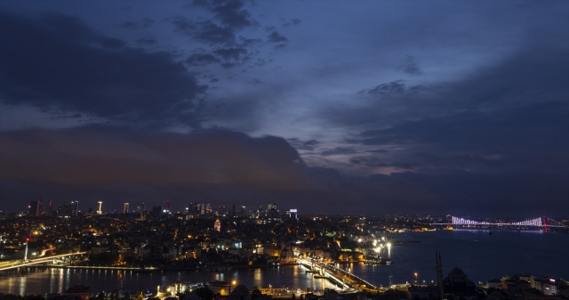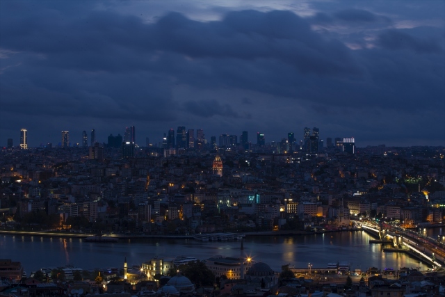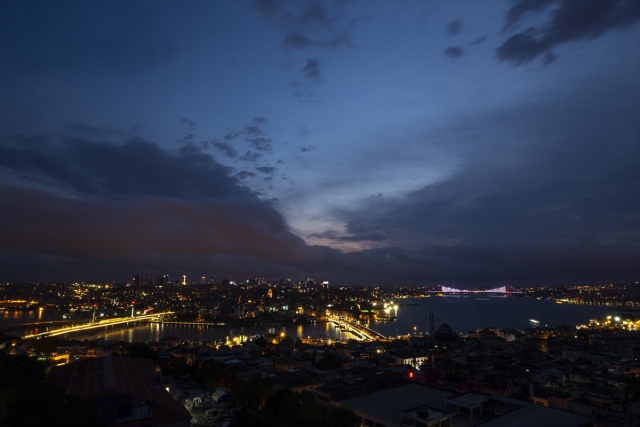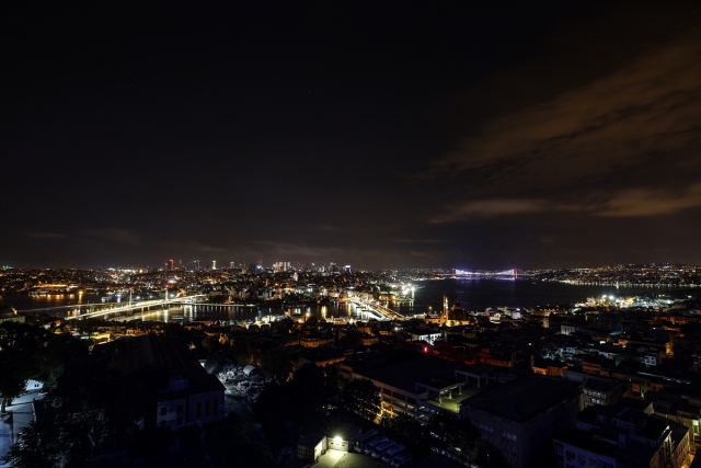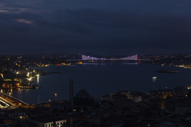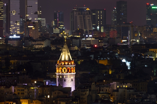 Galata Kulesi ve İstanbul Boğazı, yangınları gözetlemek ve haber vermek amacıyla İstanbul'un Beyazıt semtinde ilk olarak 1749 yılında o günkü şehre hakim bir noktada ahşap olarak inşa edilen 85 metre yüksekliğindeki yangın kulesinden sabahın ilk ışıklarında çekilen fotoğraflarda, şehrin ışıkları görüntülendi.