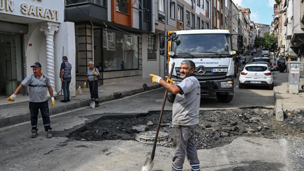 Küçükçekmece`deki sel baskınında Gineli İraman Kebe`nin hayatını kaybettiği bölgedeki Şehit Ertan Yılmaztürk Caddesi`nde meydana gelen çöküntü, ilçe belediye ekiplerince dolduruldu.