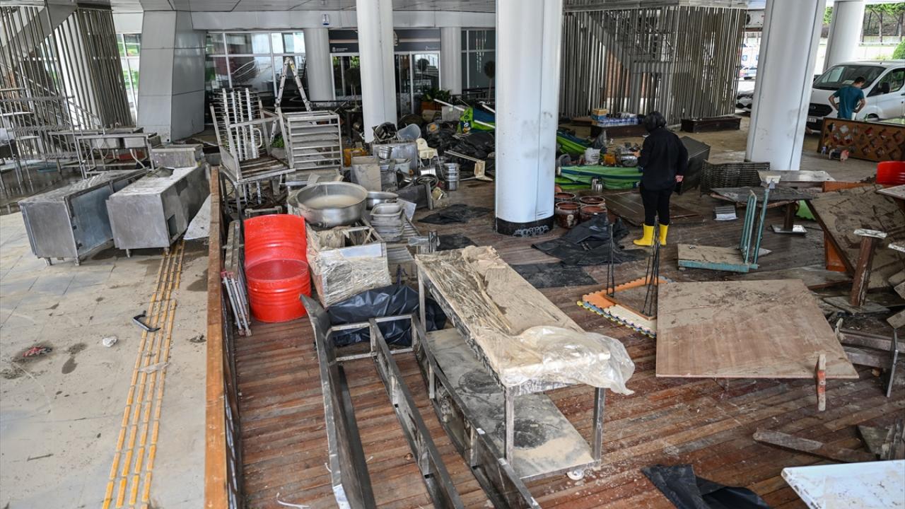 Selin vurduğu 13. ve 14`üncü bloklardaki esnaf, özelikle maddi değeri yüksek halıları dükkan önüne çıkararak temizlemeye çalışırken kullanılamaz hale gelen mobilya parçaları ise kepçelerle hafriyat kamyonlarına yüklenerek taşındı.