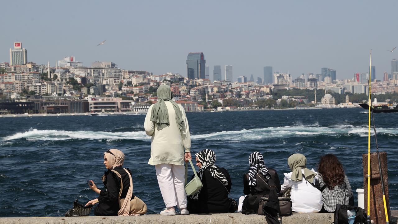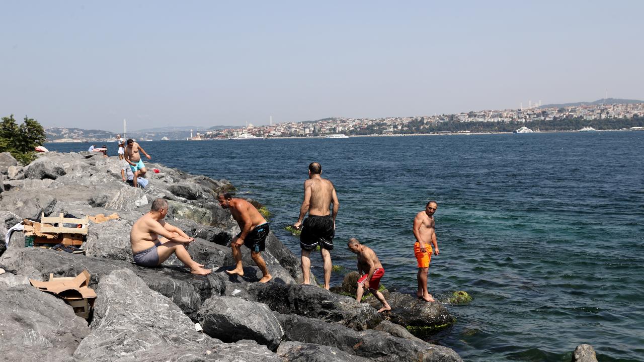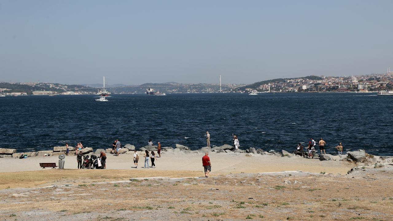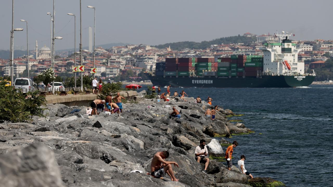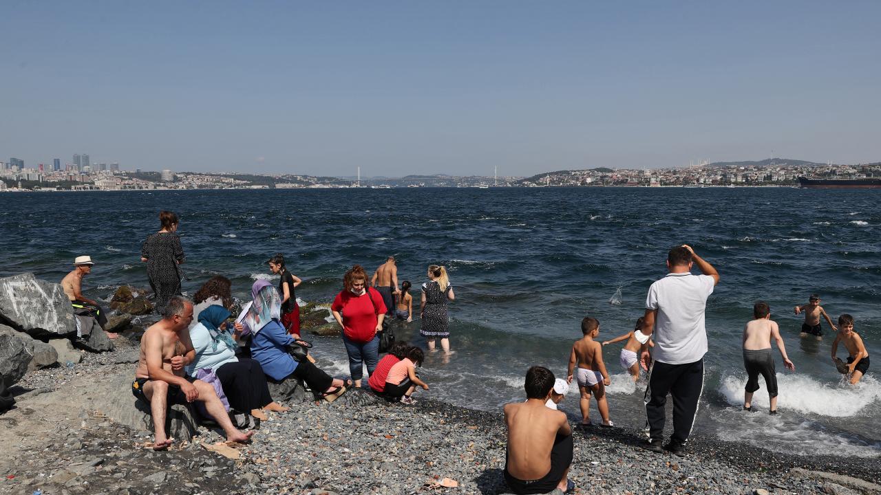 İstanbul'da sıcak havaya rağmen Eminönü sahilinde yoğunluk görüldü.