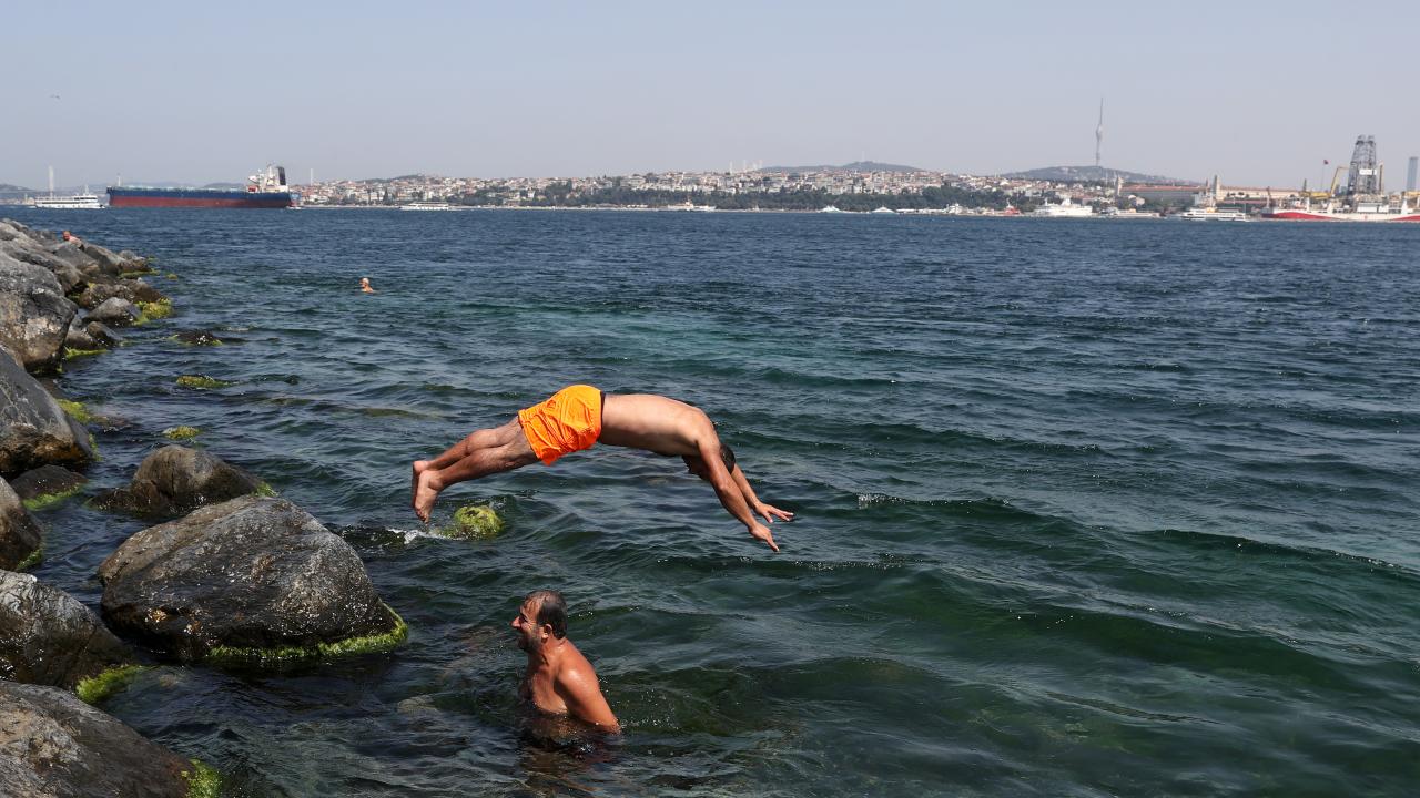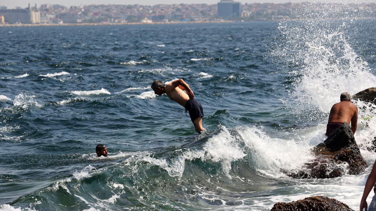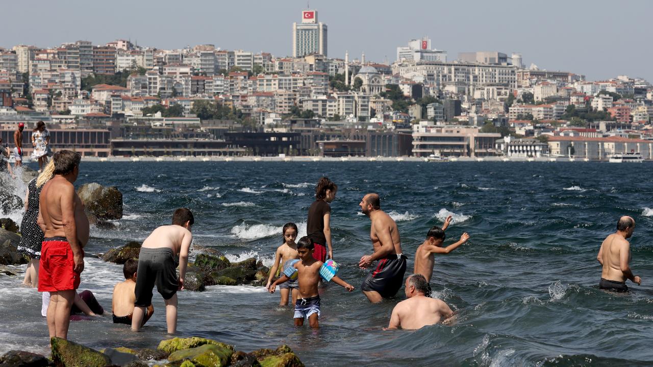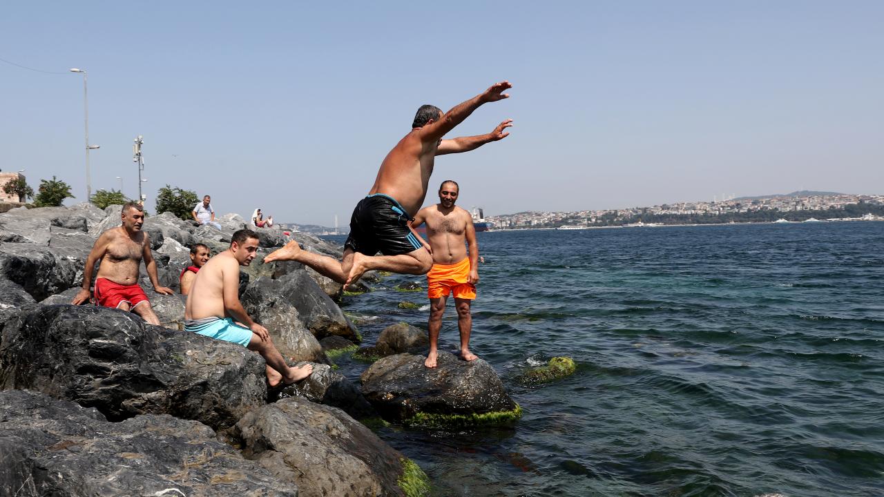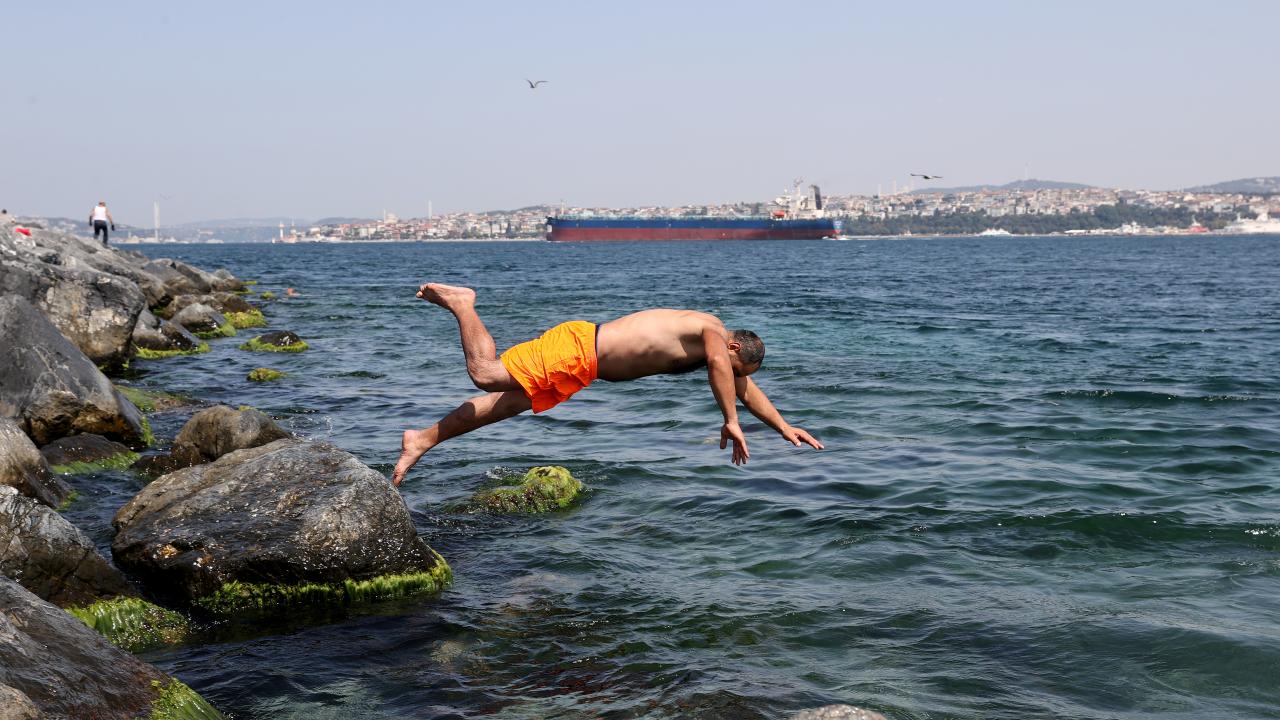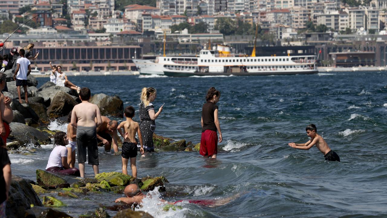 İstanbul'da sıcak havaya rağmen Eminönü sahilinde yoğunluk görüldü.