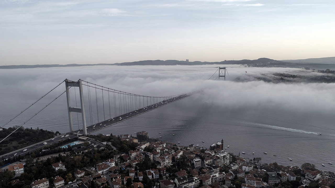 Fatih Sultan Mehmet Köprüsü (FSM) ve İstanbul Boğazı'nda sis etkili oldu.
