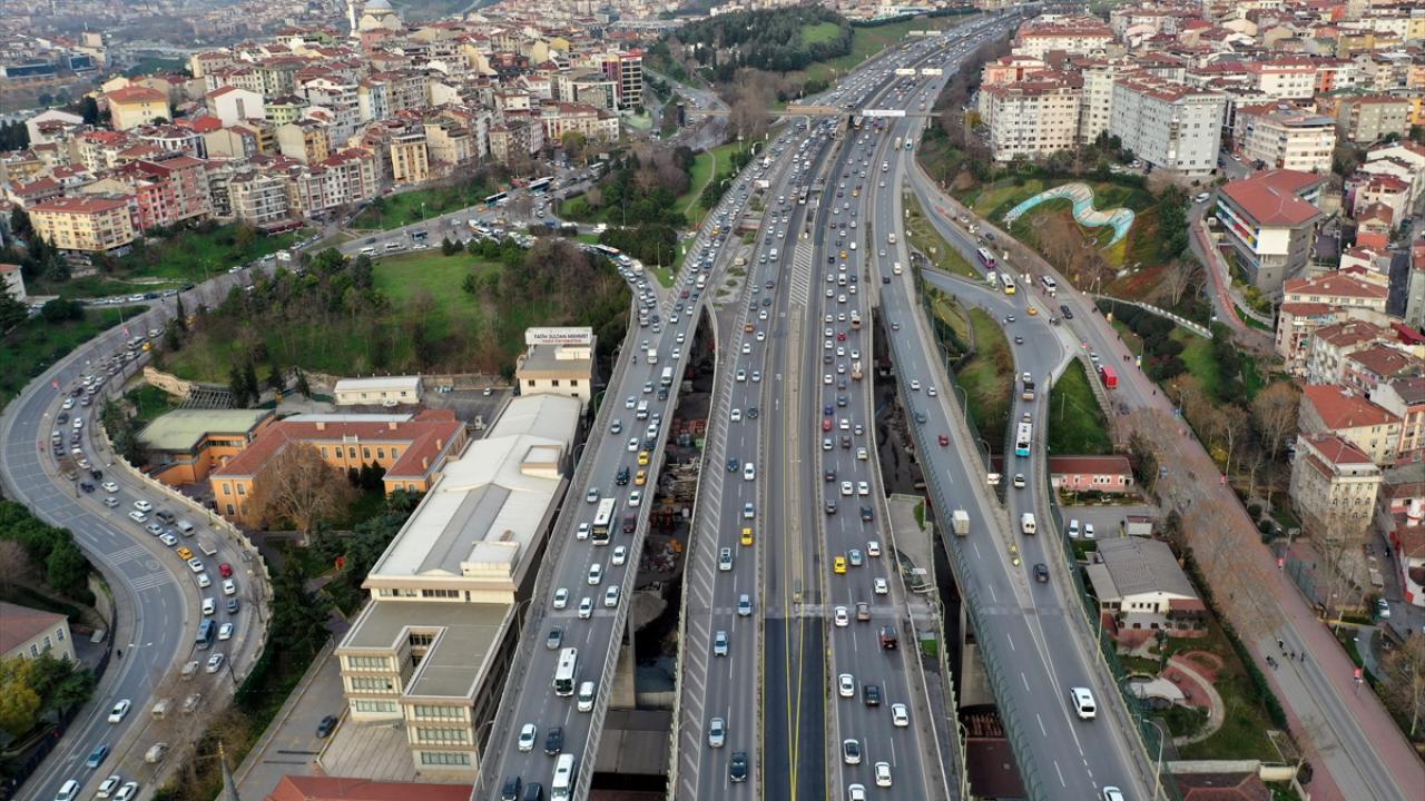İstanbul'da, yeni tip koronavirüsle (Covid-19) mücadele önlemleri kapsamında hafta sonu uygulanacak sokağa çıkma kısıtlaması öncesi, D-100 Karayolu Haliç mevkisinde her iki yönde trafik yoğunluğu yaşandı.