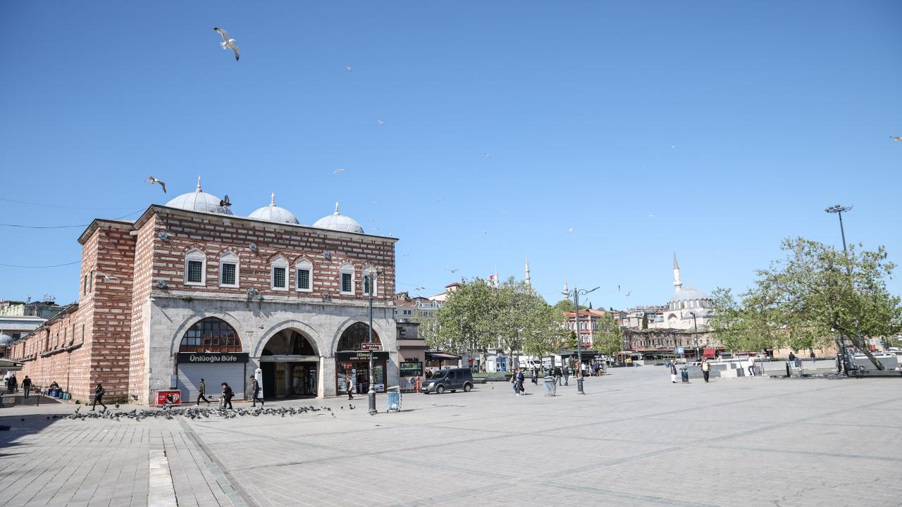 Vatandaşların da `tam kapanma` kurallarına uyduğu, Ortaköy Meydanı ve çevresinin de diğer yerler gibi boş kaldığı görüldü.
