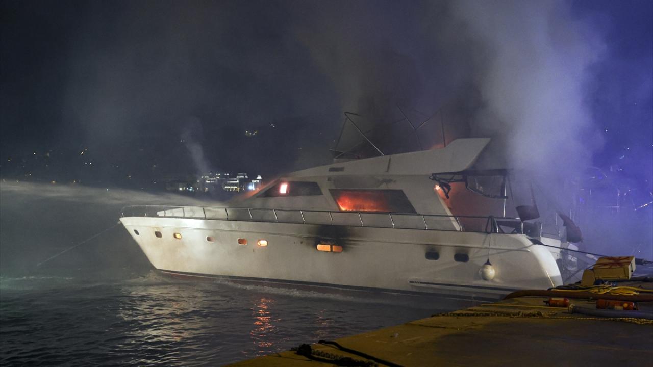 Ekiplerin denizden ve karadan 3 saat boyunca sürdürdüğü söndürme çalışmaları sırasında içinde yangın çıkan tekne battı.