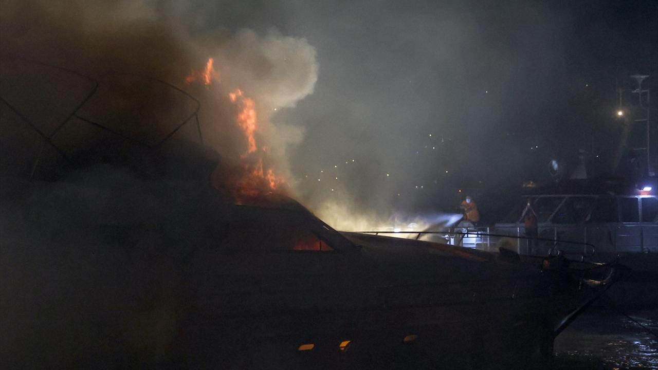 Güvenlik güçleri bölgede önlem alırken, sahilde yangın çıkan tekneye yakın mesafede bulunan deniz araçları da bölgeden uzaklaştırıldı.