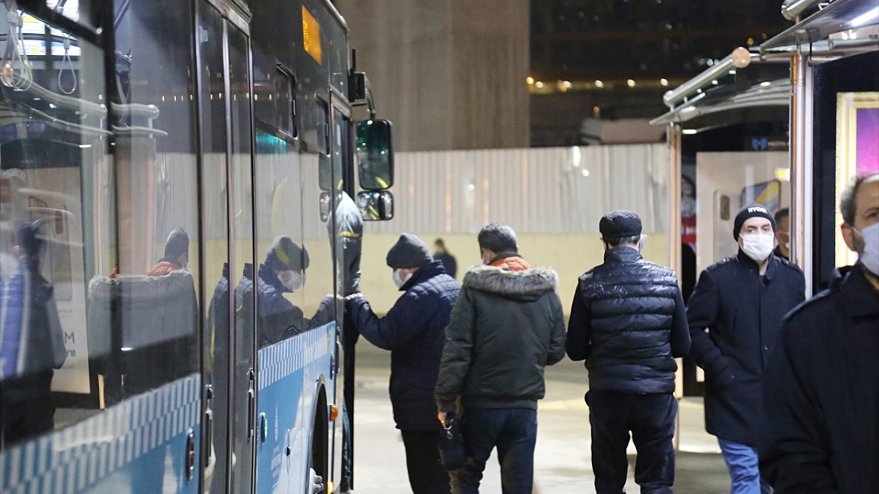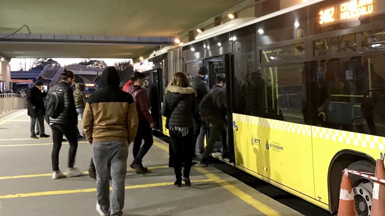 Zaman zaman yoğunluğun oluştuğu otobüs duraklarında bekleyen yolcuların maske ve mesafe kurallarına dikkat ettiği görüldü.