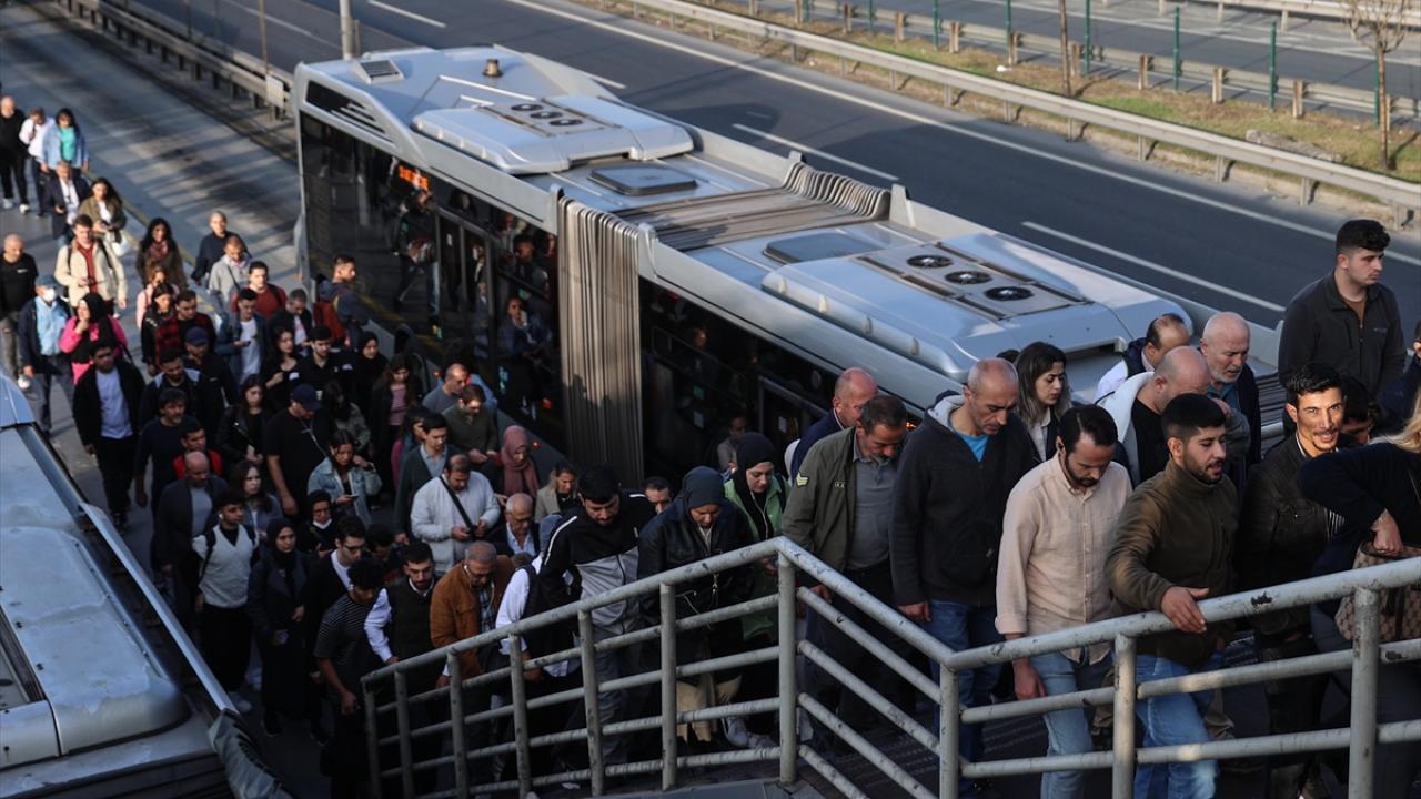 İstanbul`da toplu taşıma kullanımının en yoğun olduğu sabah saatlerinde Zeytinburnu Cevizlibağ metrobüs durağında yoğunluk oluştu.