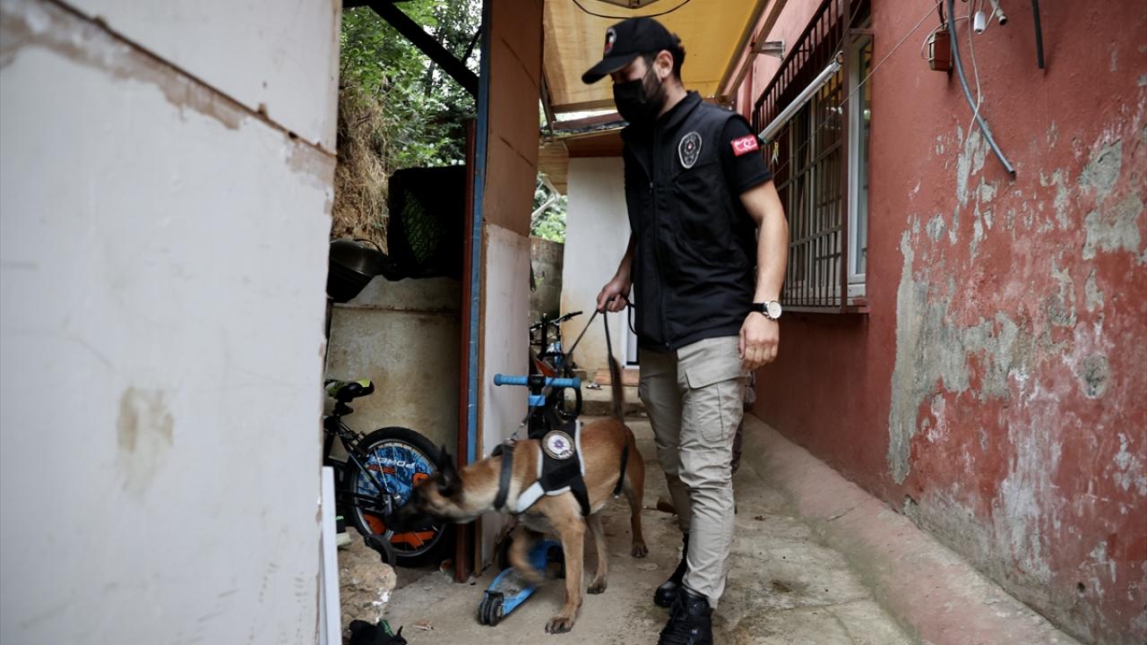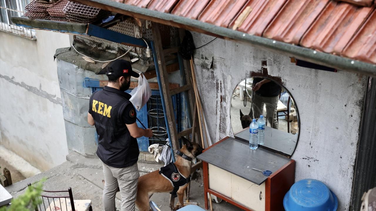 Özel harekat polislerinin de katıldığı operasyonlarda ekipler özel eğitimli narkotik köpekleriyle adreslerde arama yaptı.
