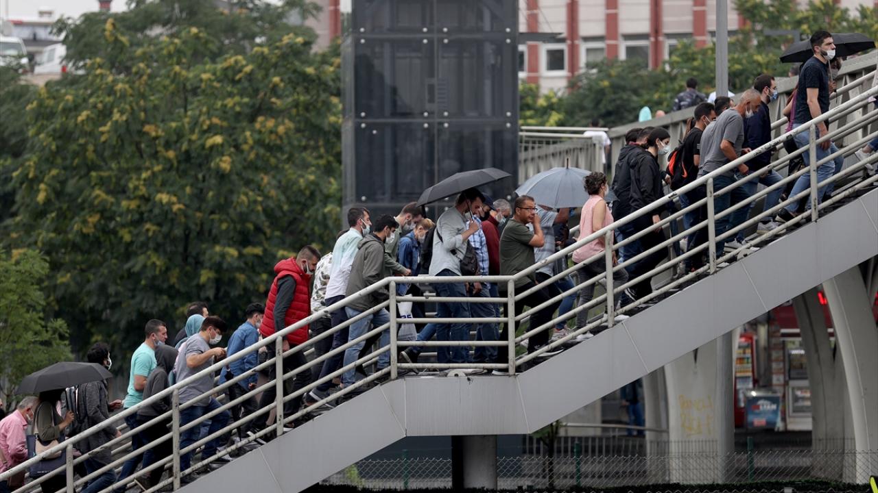 Üsküdar’da da yağmura hazırlıksız yakalananlar ıslanmamak için koşarak kaçmaya çalıştı, Marmaray Üsküdar İstasyonu’nda inenler istasyon önünde yağmurun durmasını bekledi.