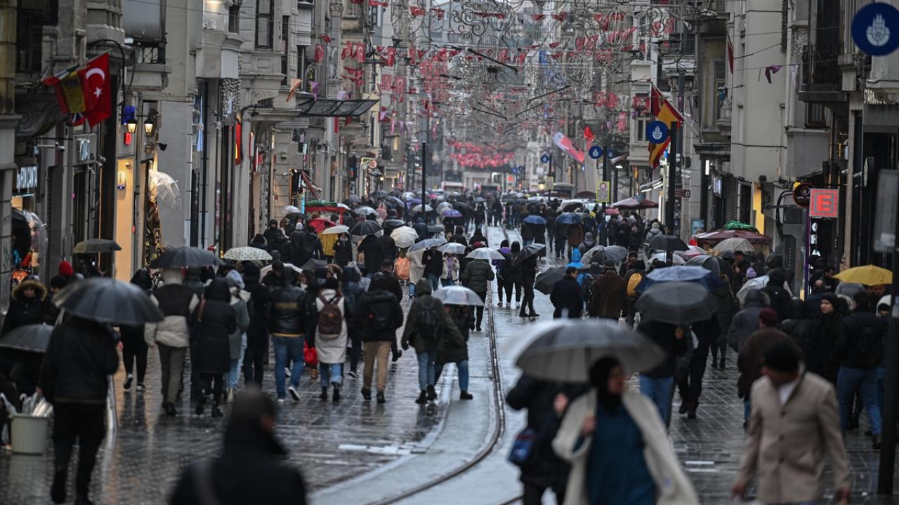 İstanbul`da yağışlı hava, Taksim bölgesinde de etkili oldu.
