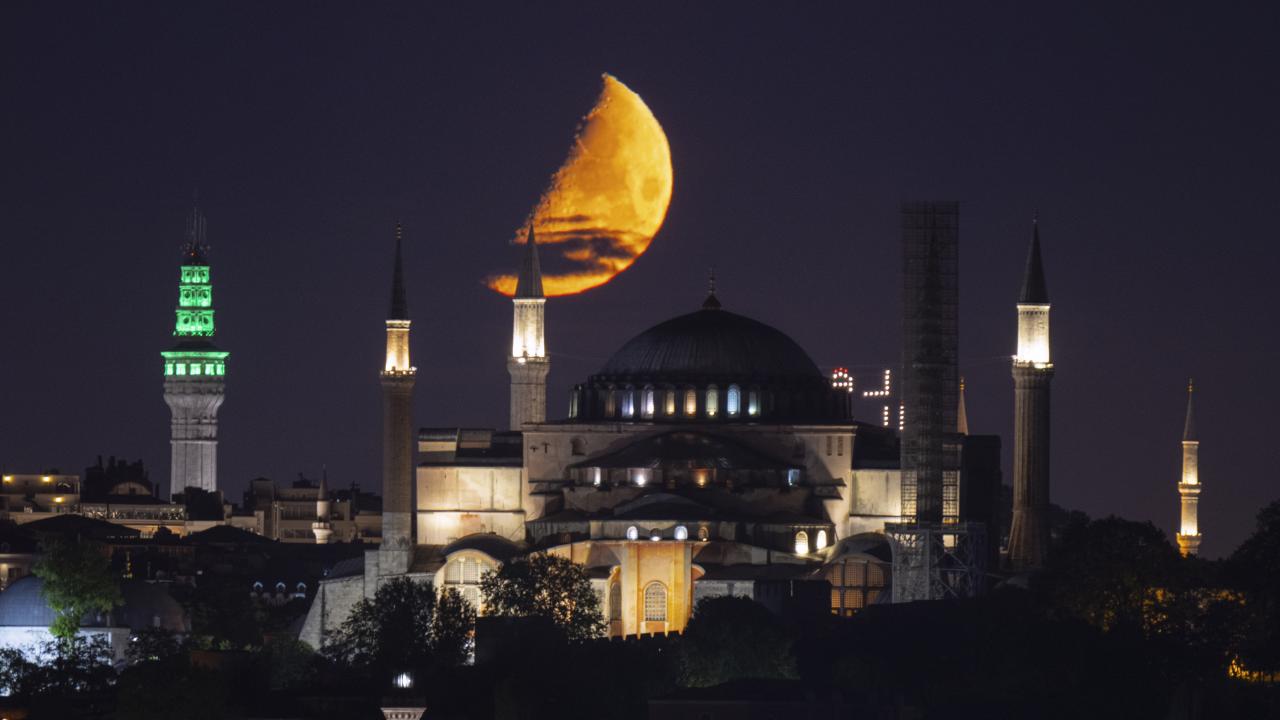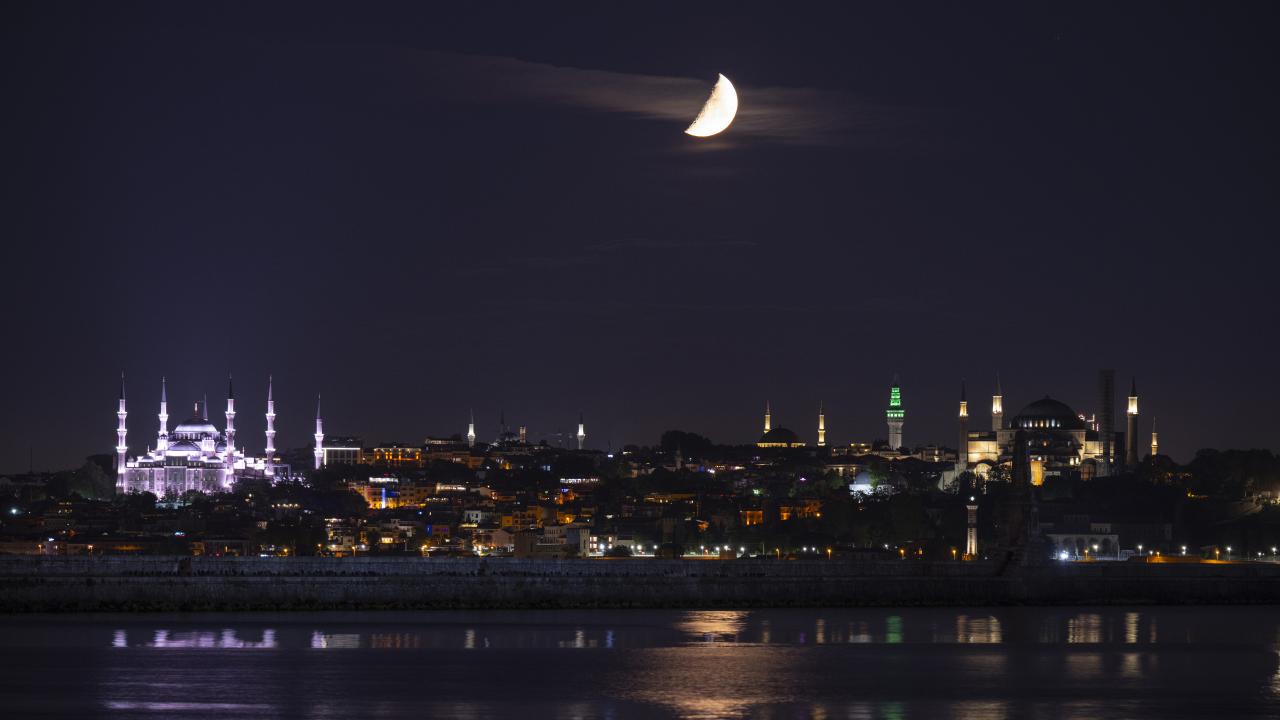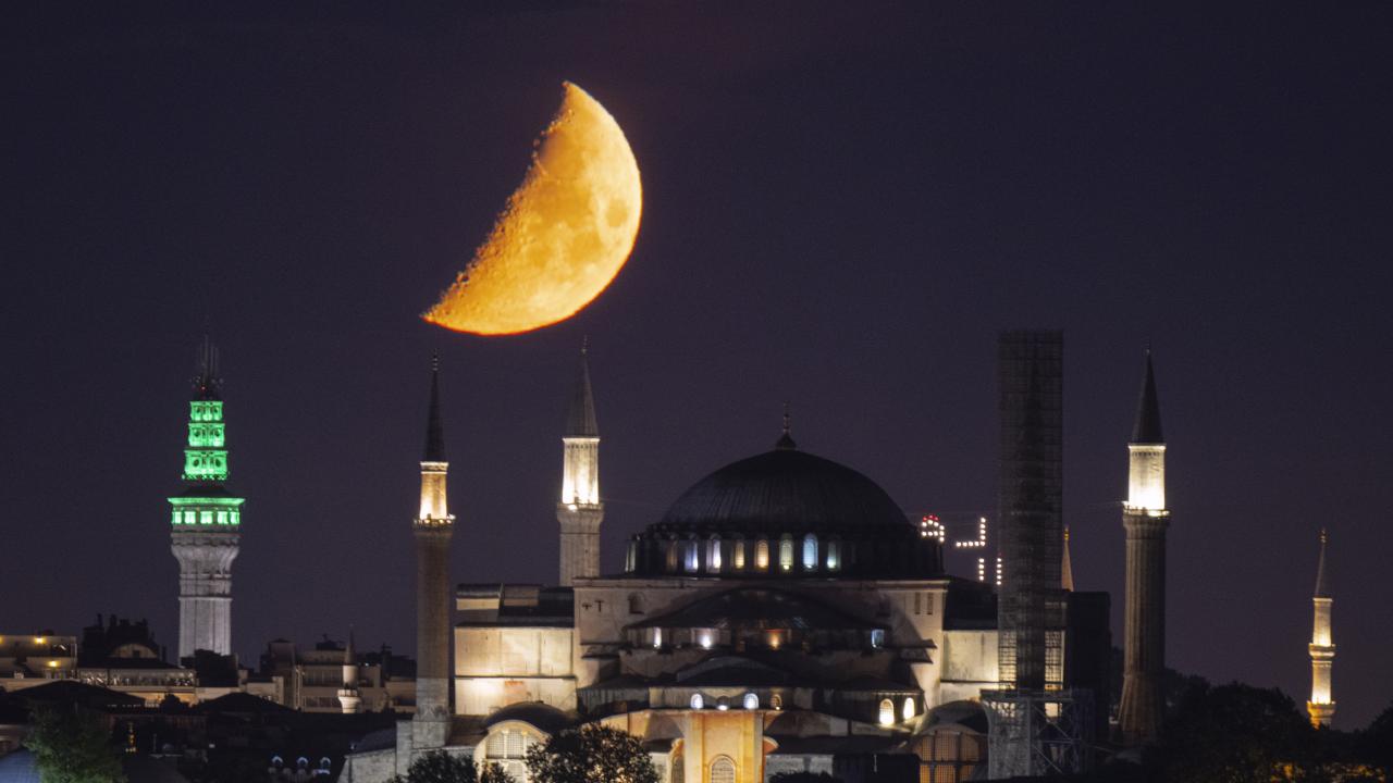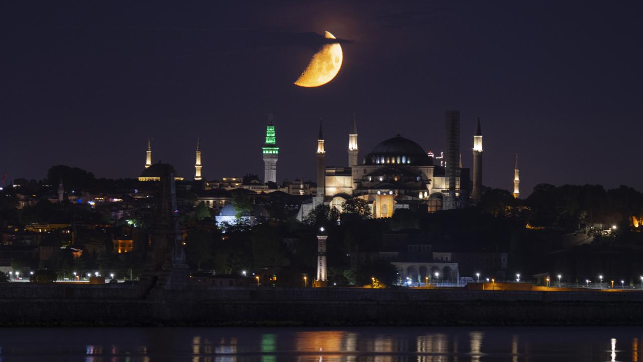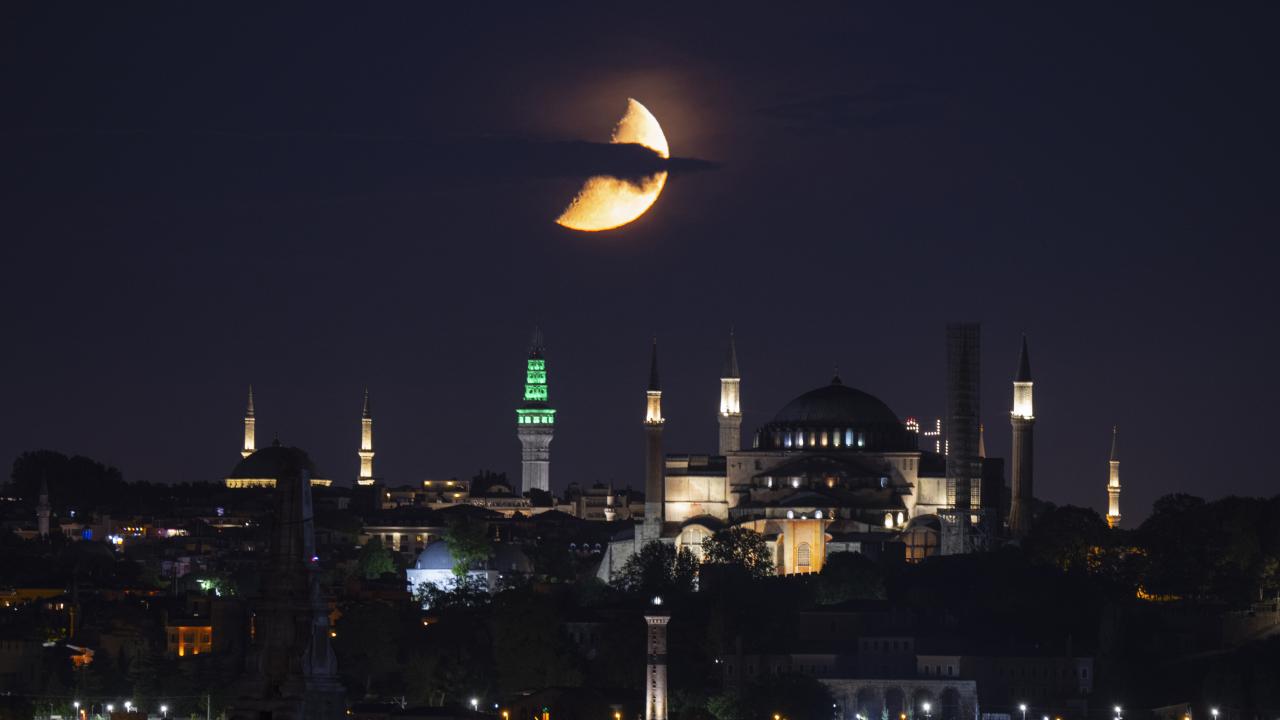 İstanbul'da yarım Ay, Ayasofya-i Kebir Cami-i Şerifi ile birlikte görüntülendi.