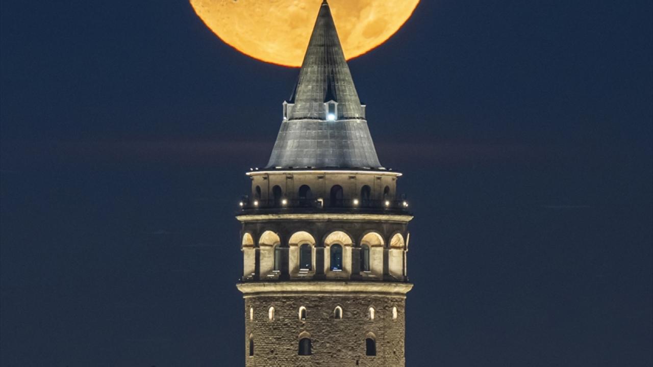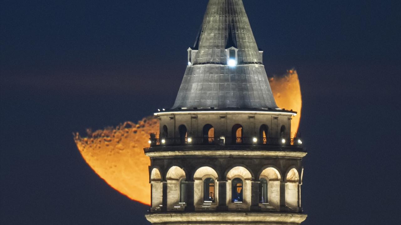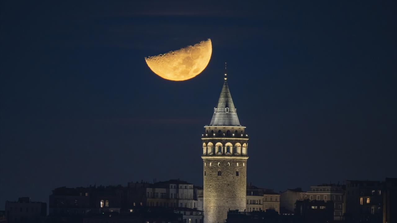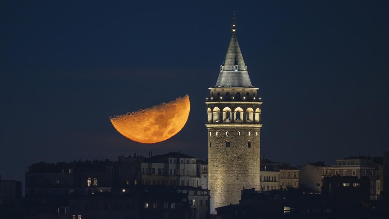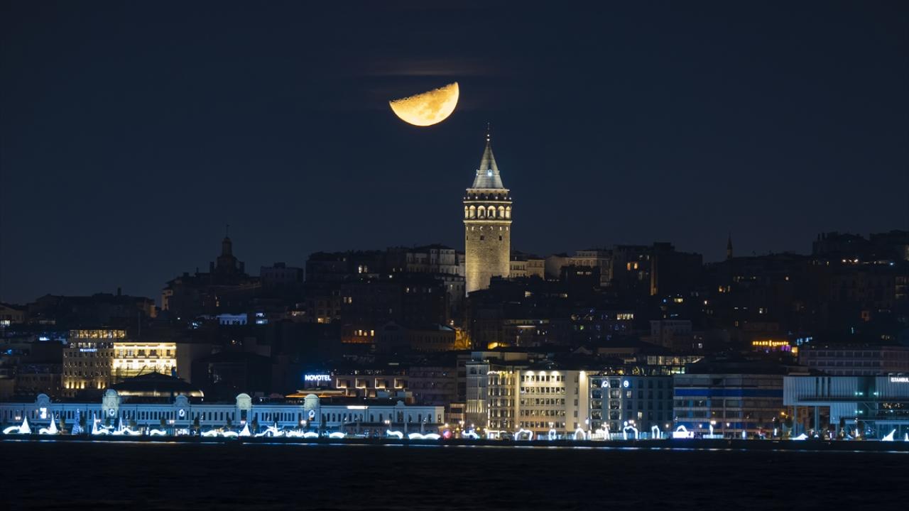 İstanbul'da yarım ay, Galata Kulesi ile birlikte görüntülendi.