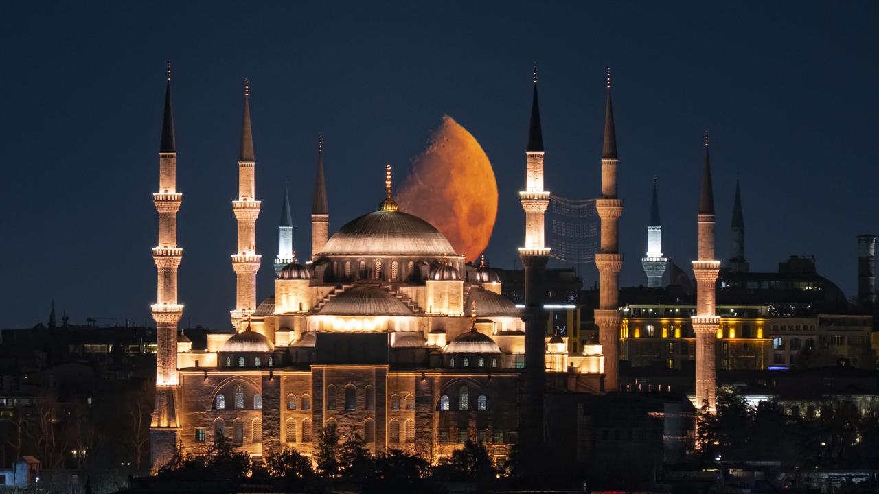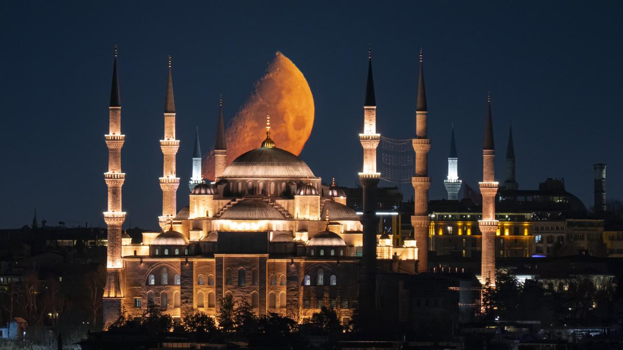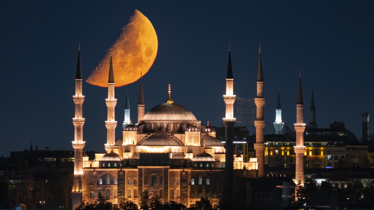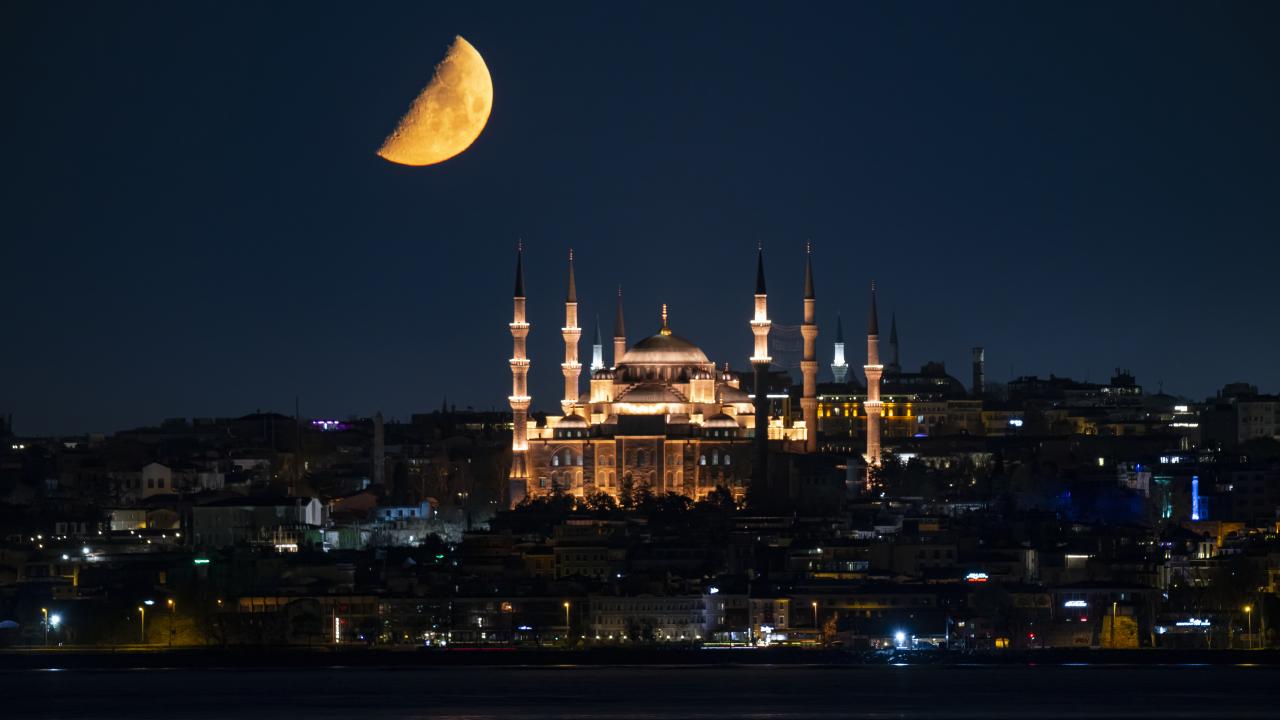 İstanbul'da yarım ay, Sultanahmet Camisi ile birlike görüntülendi.