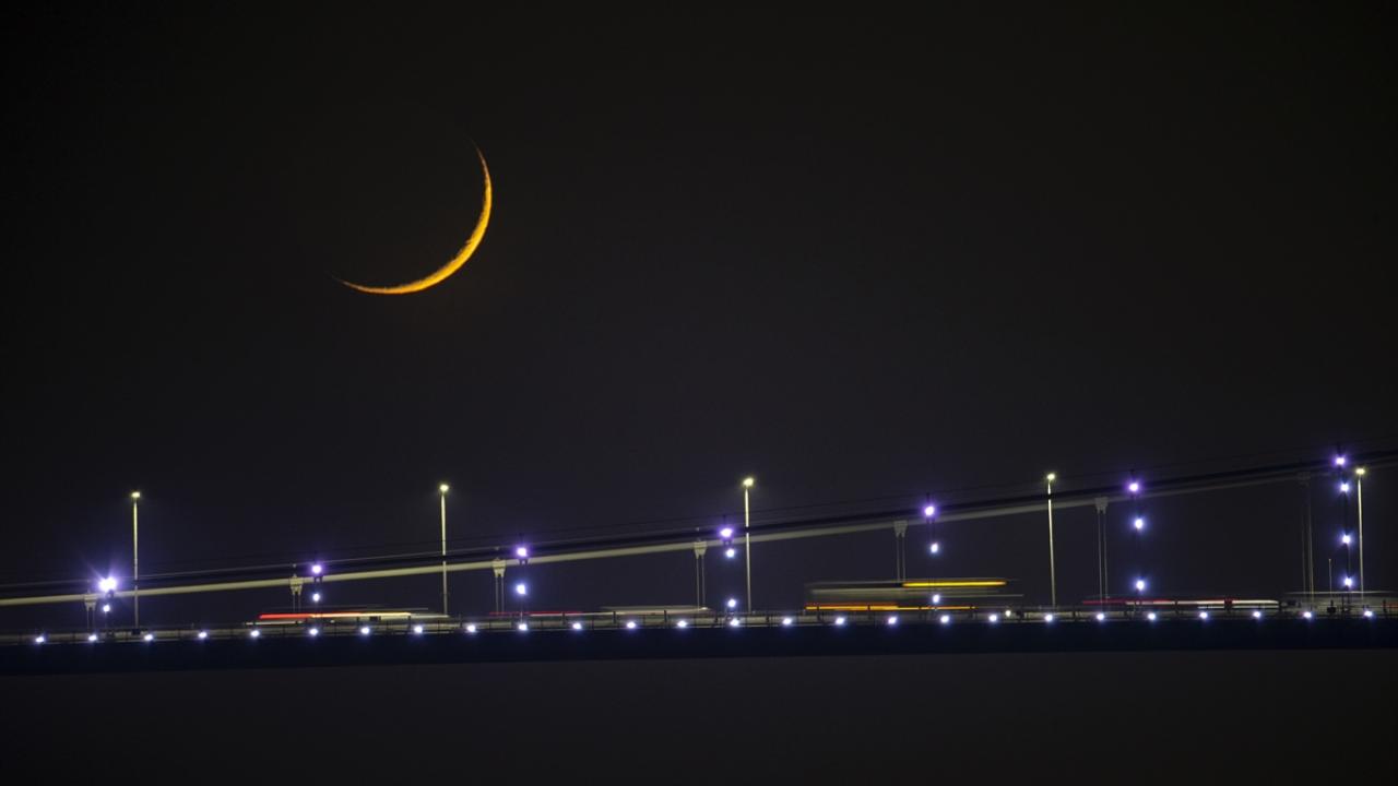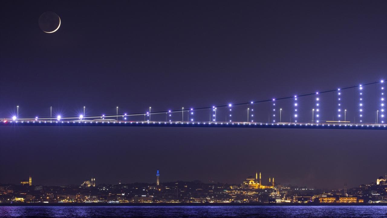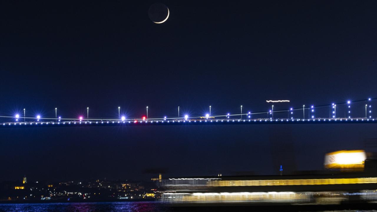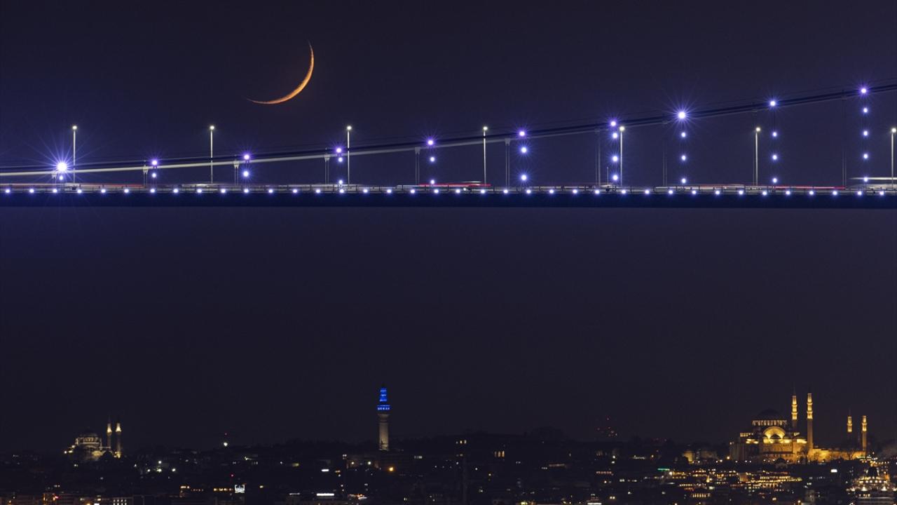 İstanbul'da yeni yılın ilk hilali 15 Temmuz Şehitler Köprüsü, Süleymaniye Camii ve Tarihi Yarımada ile güzel görüntü oluşturdu.