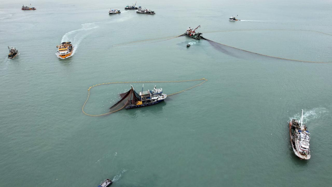 Onlarca balıkçı teknesi ilk önce sonar yardımı ile balık sürülerinin nerede olduğunu tespit etti.